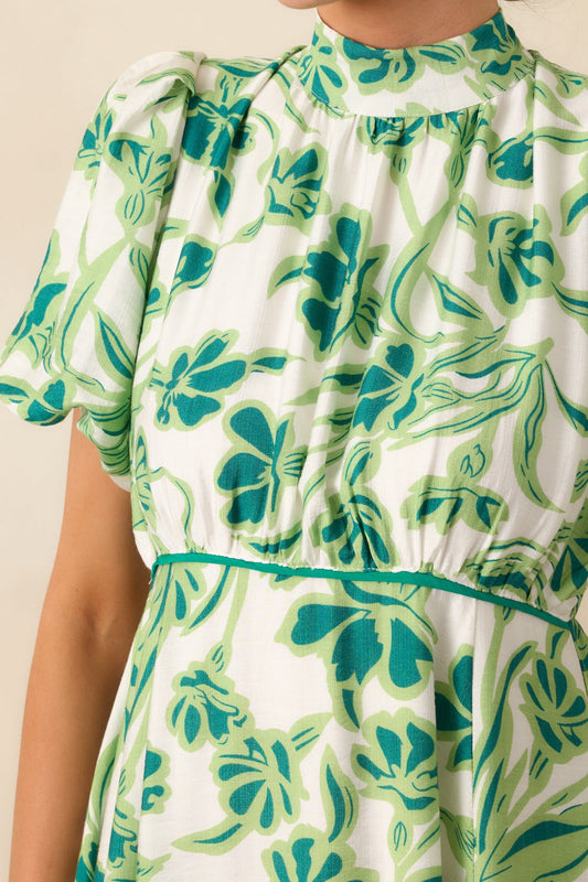 Blooming Season Green Floral Puff Sleeve Midi Dress