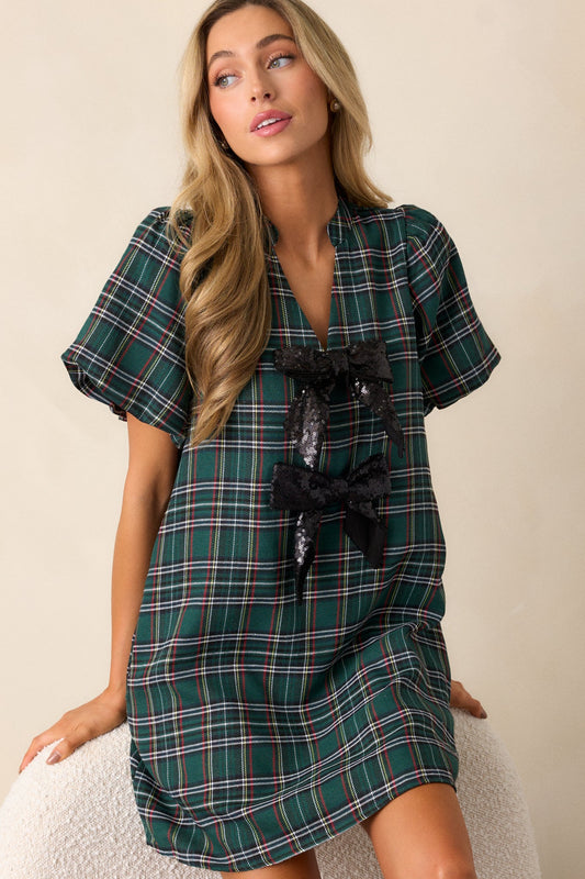 Whispers In The Wind Forest Green Plaid Mini Dress
