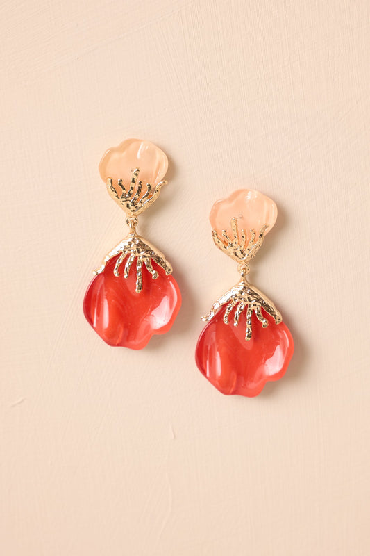 Wildflower Muse Red Coral Flower Petal Drop Earrings