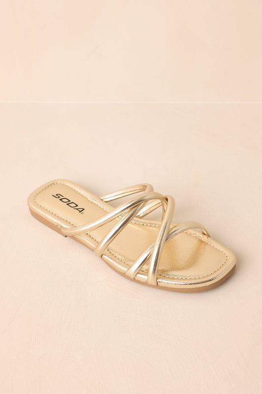 Wide Open Spaces Metallic Gold Flat Slide On Sandals