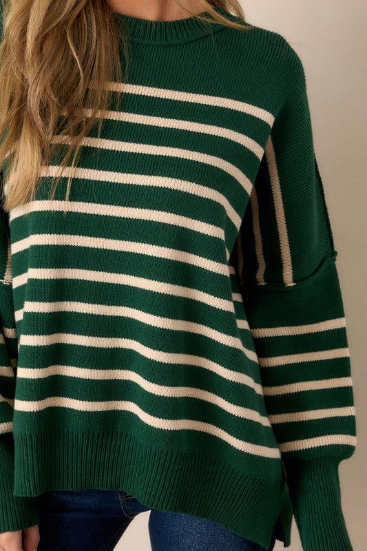 Whispering Woods Hunter Green Stripe Knit Sweater
