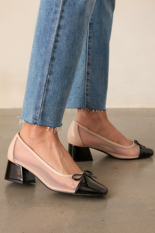 With Every Step Beige & Black Block Heel Ballet Pumps