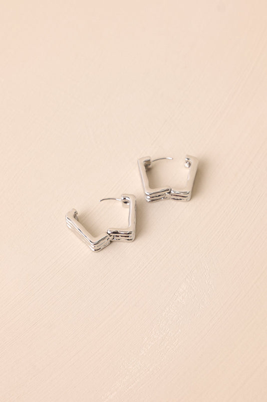 Wish Me Luck Silver Textured Square Hoop Earrings
