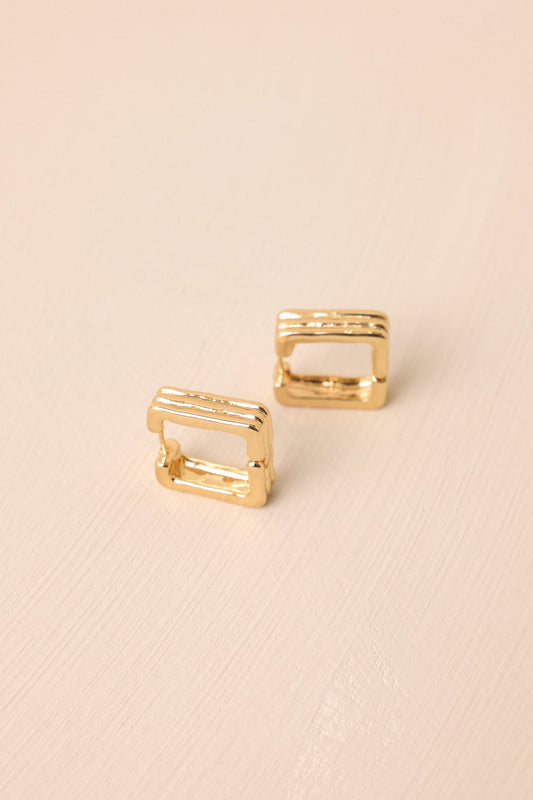 Wish Me Luck Gold Textured Square Hoop Earrings