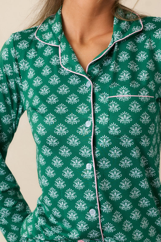 Wonders Await Green Fleur De Lis Long Sleeve Pajama Top