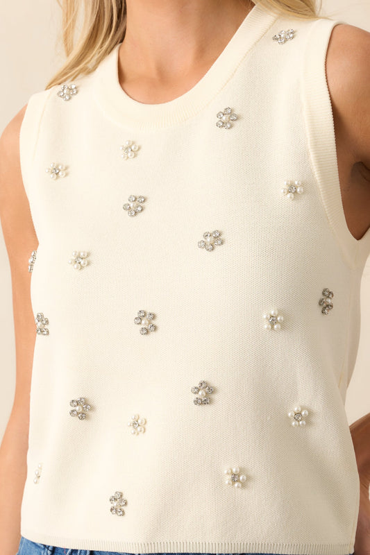 Yours To Keep Ivory Floral Embellished Sweater Vest