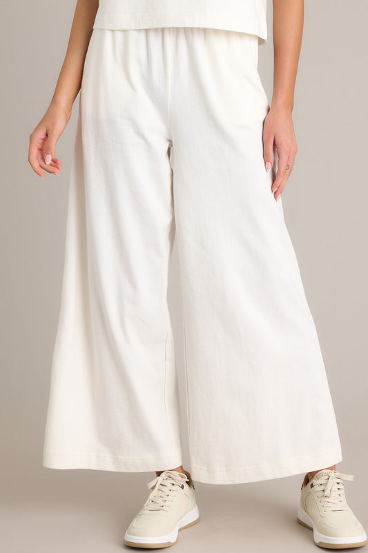 Z Supply Scout Sea Salt White Cotton Jersey Flare Pants