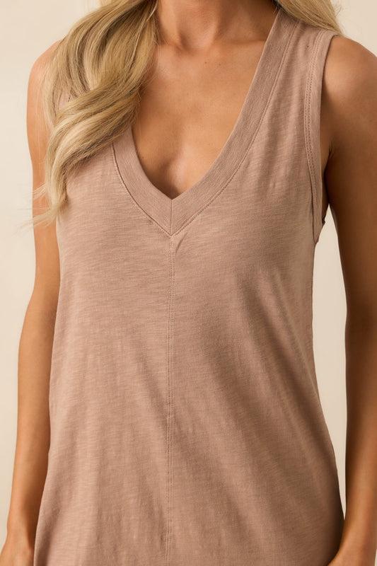 Z Supply Tan Sloane V-Neck Silky Rib Tank
