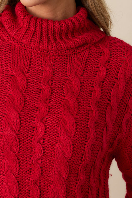 Z Supply Tied To You Red Cable Knit Turtleneck Sweater