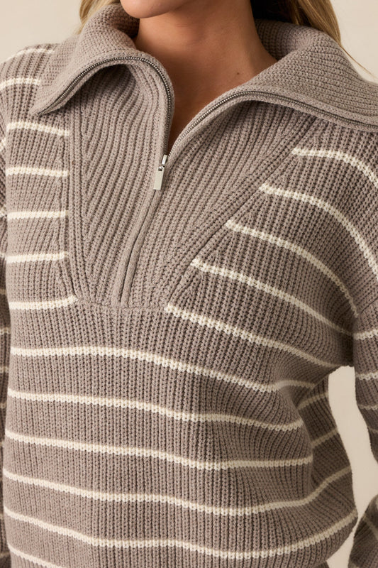 Z Supply Villa Heather Taupe Half Zip Sweater