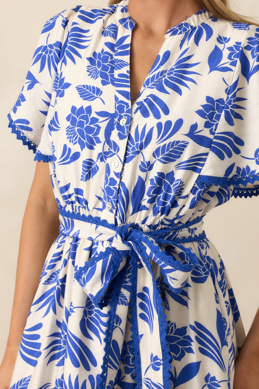 Cruising By Blue Floral Short Sleeve Midi Dress