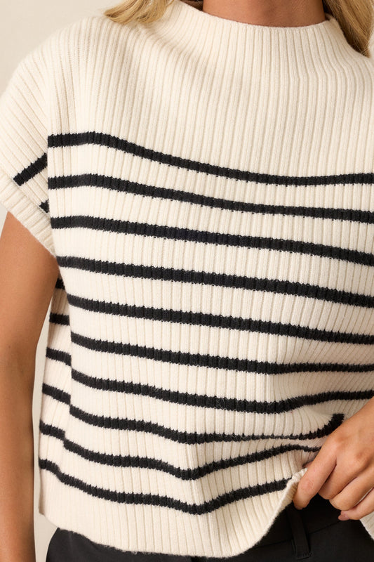 Evening Shade Ivory Stripe Short Sleeve Sweater Top