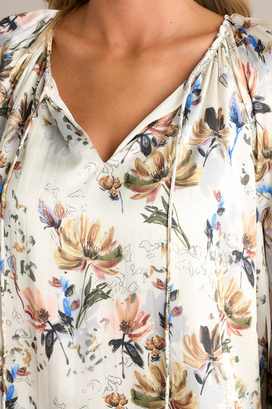 Golden Orchid Ivory Floral Balloon Sleeve Blouse