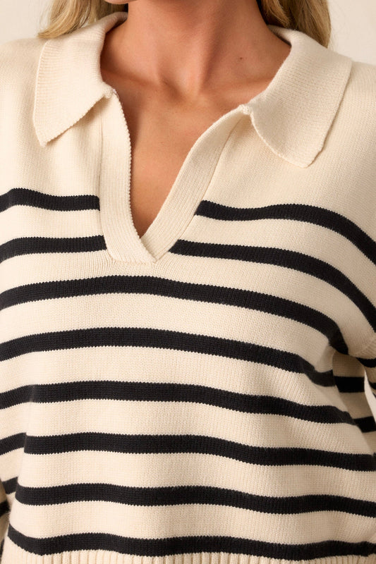 Got A Feeling Beige & Black Stripe Collared Sweater