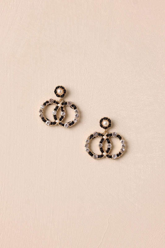 Gossamer Sky Black & Gold Double Circle Drop Earrings