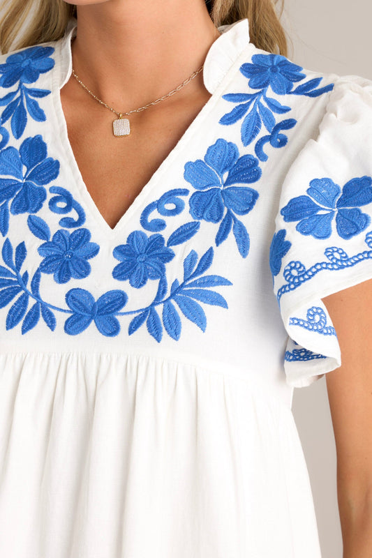 Happy To Be Here Blue Floral Embroidered Eyelet Maxi Dress