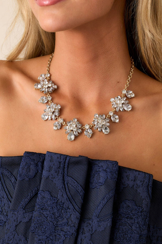 Hopeless Romantic Gold Rhinestone Statement Necklace