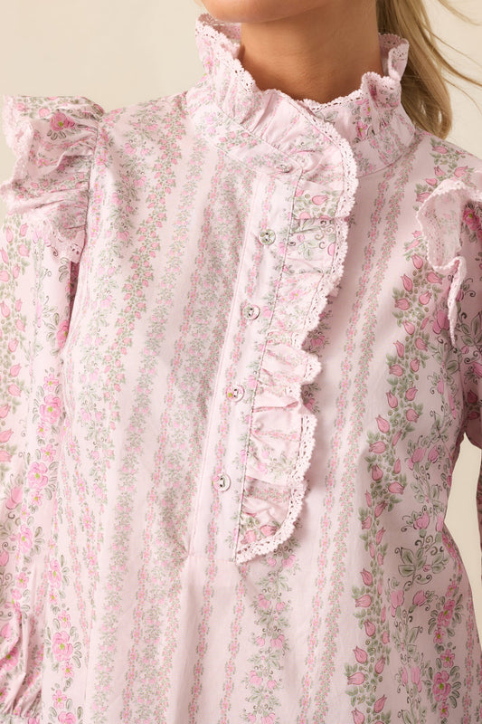Hummingbird’s Haven Cotton Pink Flutter Sleeve Blouse