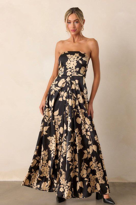 In The Dark Black Floral Strapless Wide Leg Jumpsuit