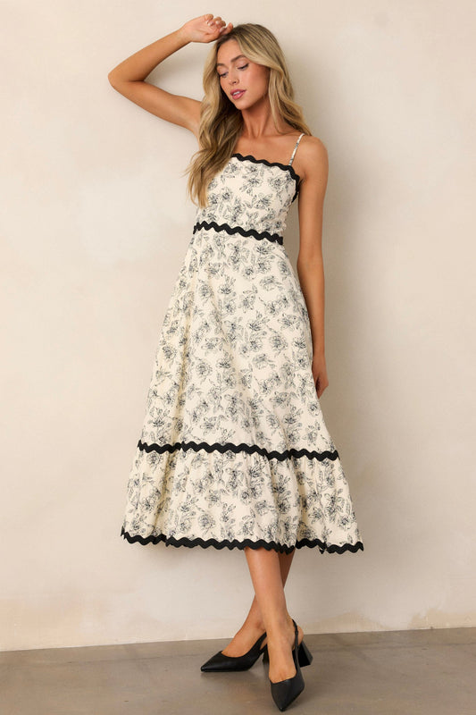 Jumping Ahead Tan Floral Embroidered Midi Dress