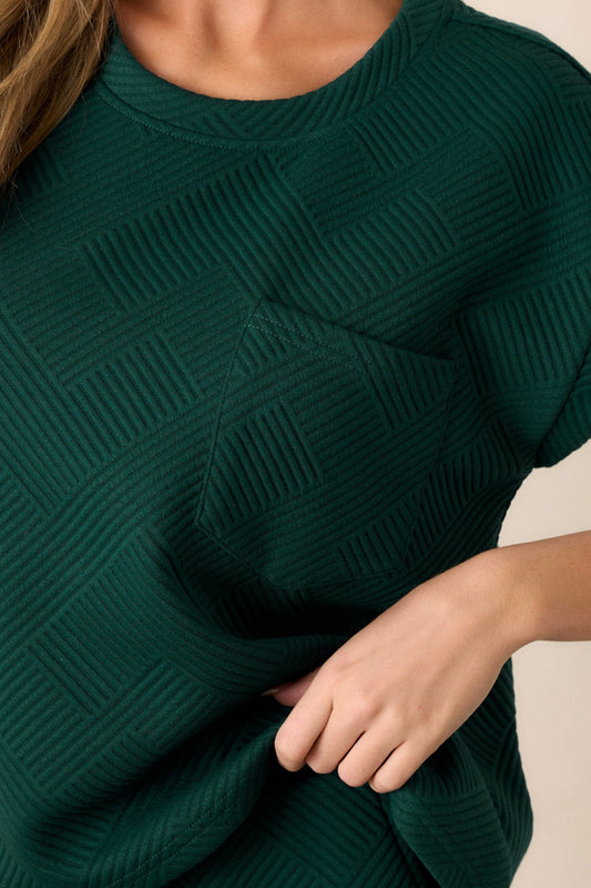 Keep It Creative Forest Green Textured Short Sleeve Top