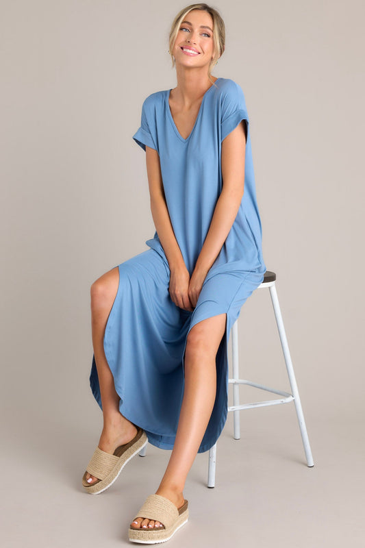 Always The Right Time Navy Cotton Sleeveless Midi Dress