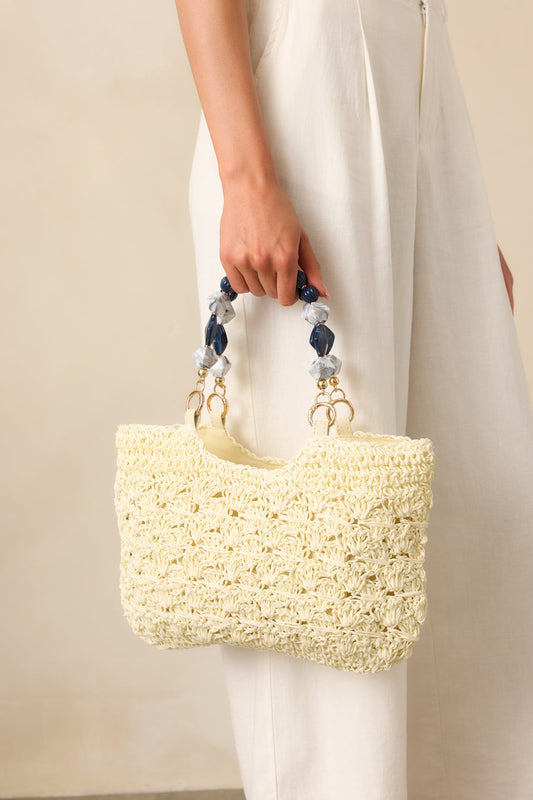 No Need To Rush Ivory Raffia Woven Structured Handbag
