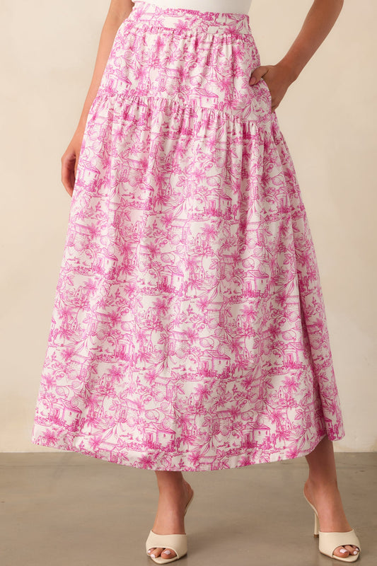 She Made Her Moment Pink Tropical Toile Print Cotton Maxi Skirt