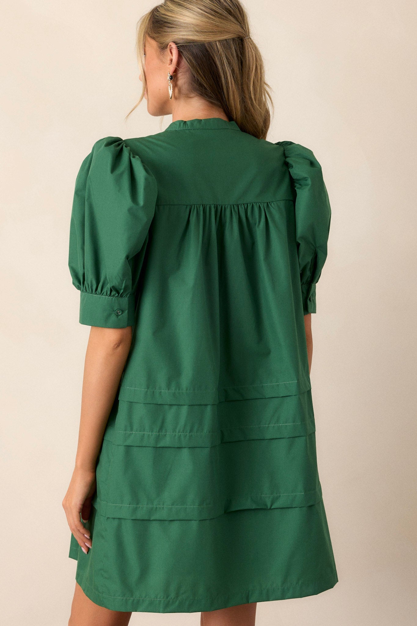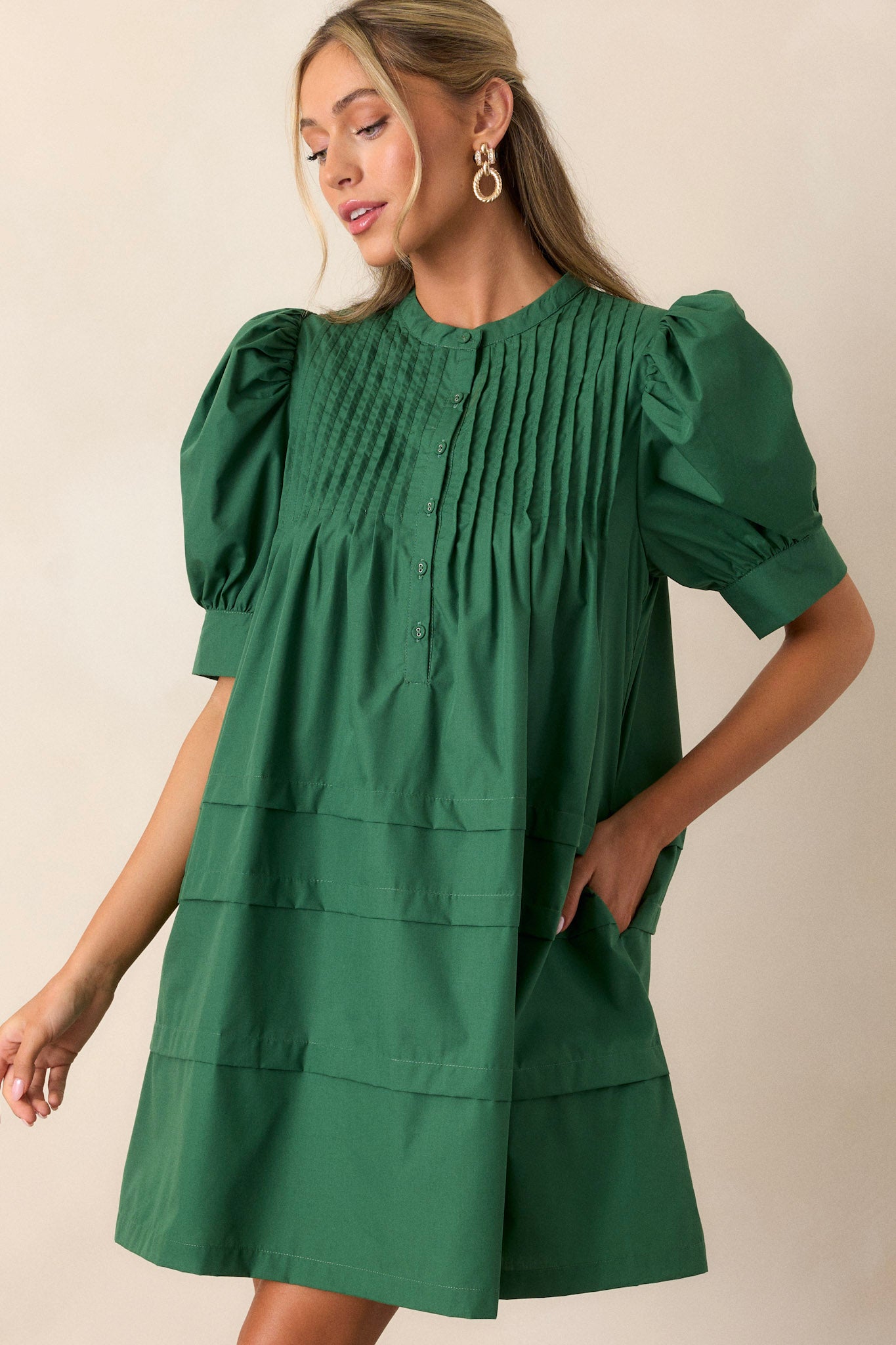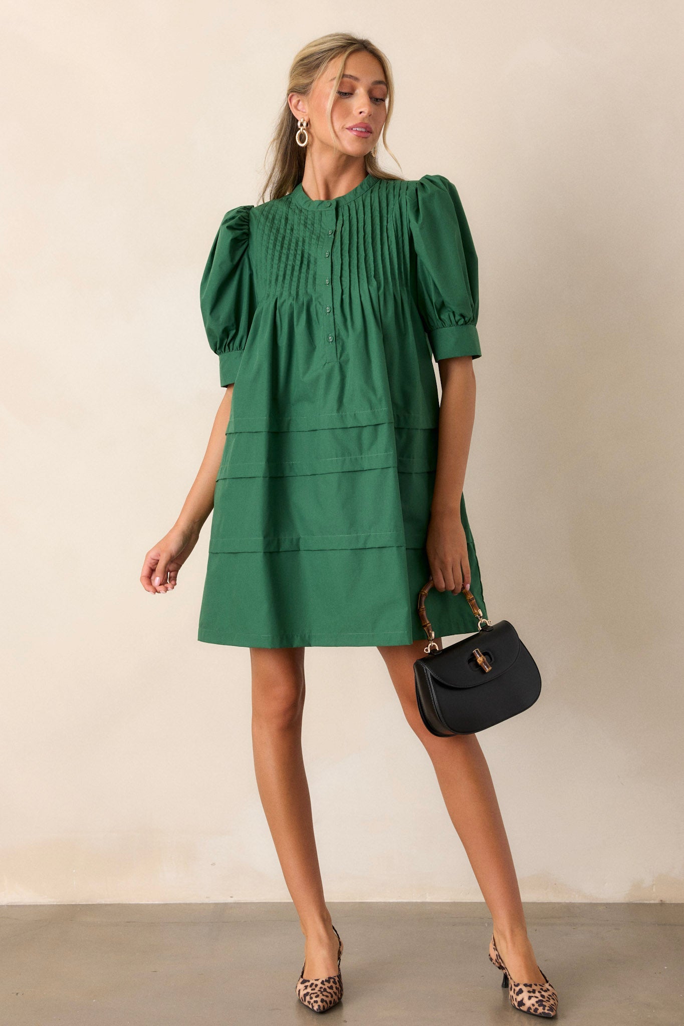 Conquer the world with our vibrant Green Mini Puff Sleeve Dress! With its bold color and playful puff sleeves, you'll be sure to stand out and make a statement. Perfect for taking risks and embracing adventure, this dress will have you feeling confident and ready to take on the world. This dress featured two side pockets, a functional button-front and puff sleeves.