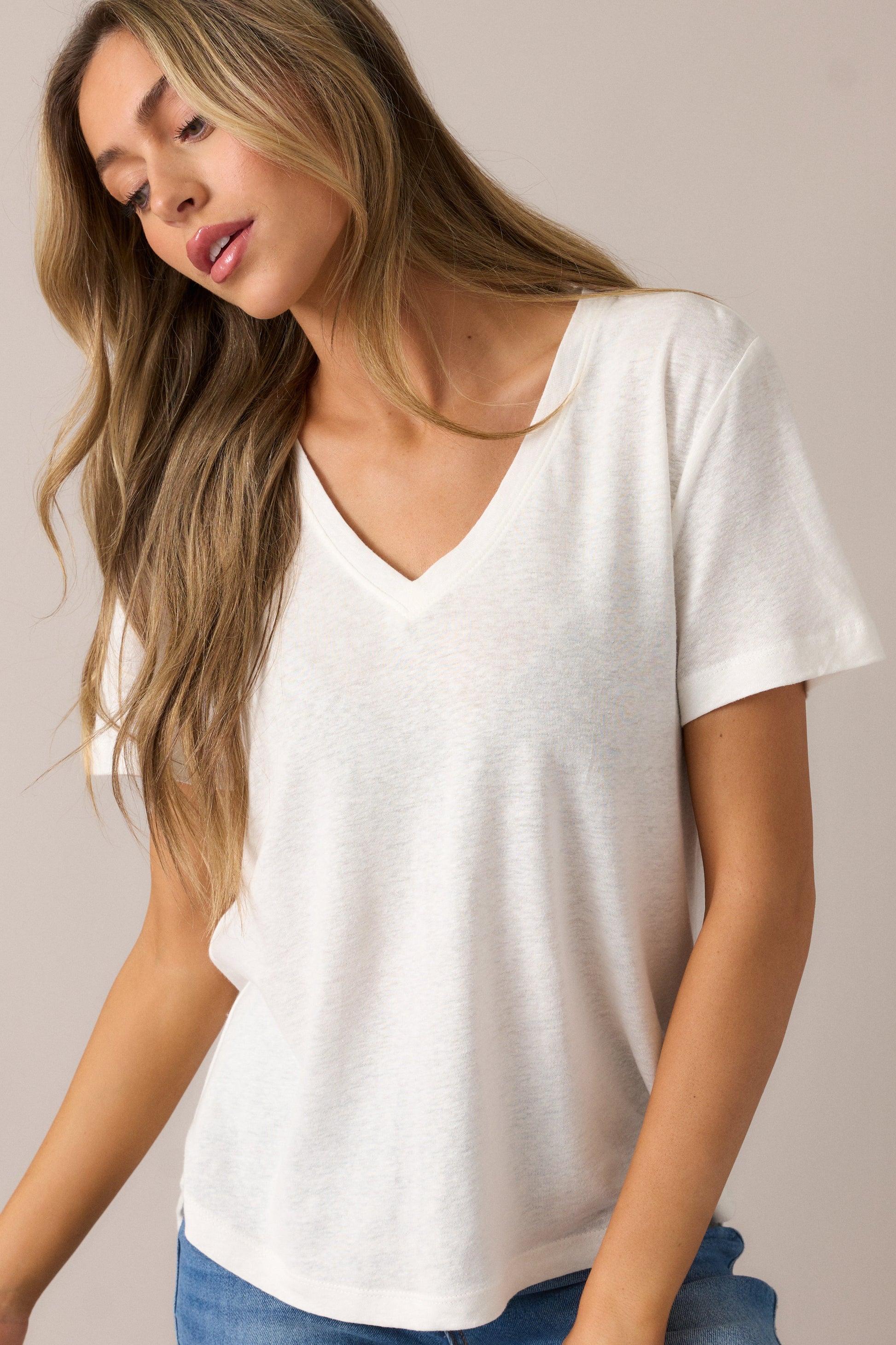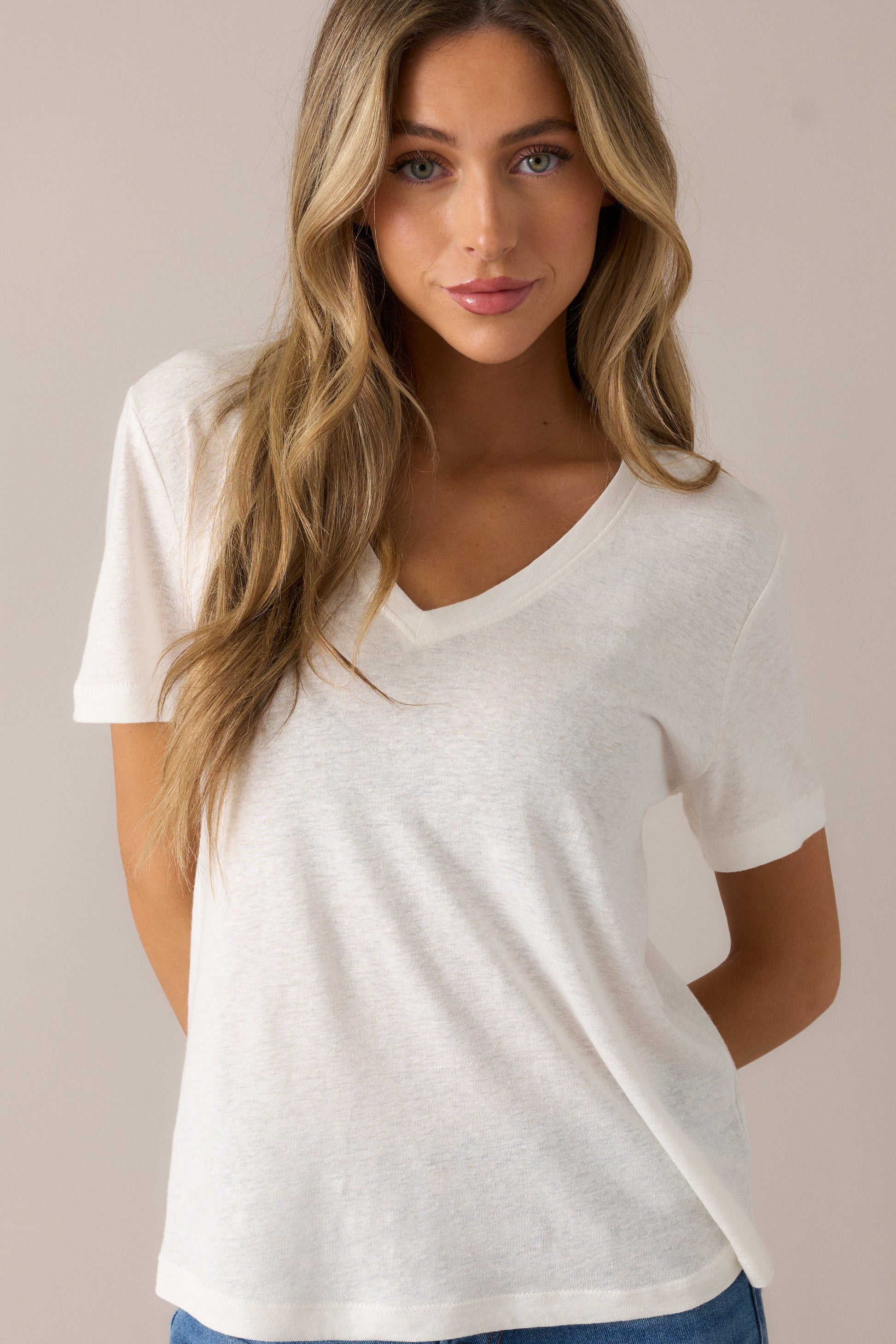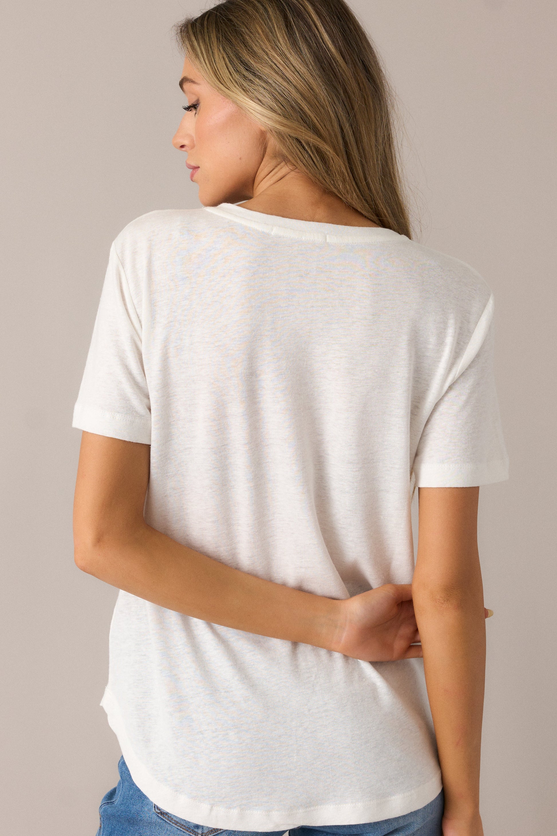 All The Way Ivory V-Neckline Washed Tee