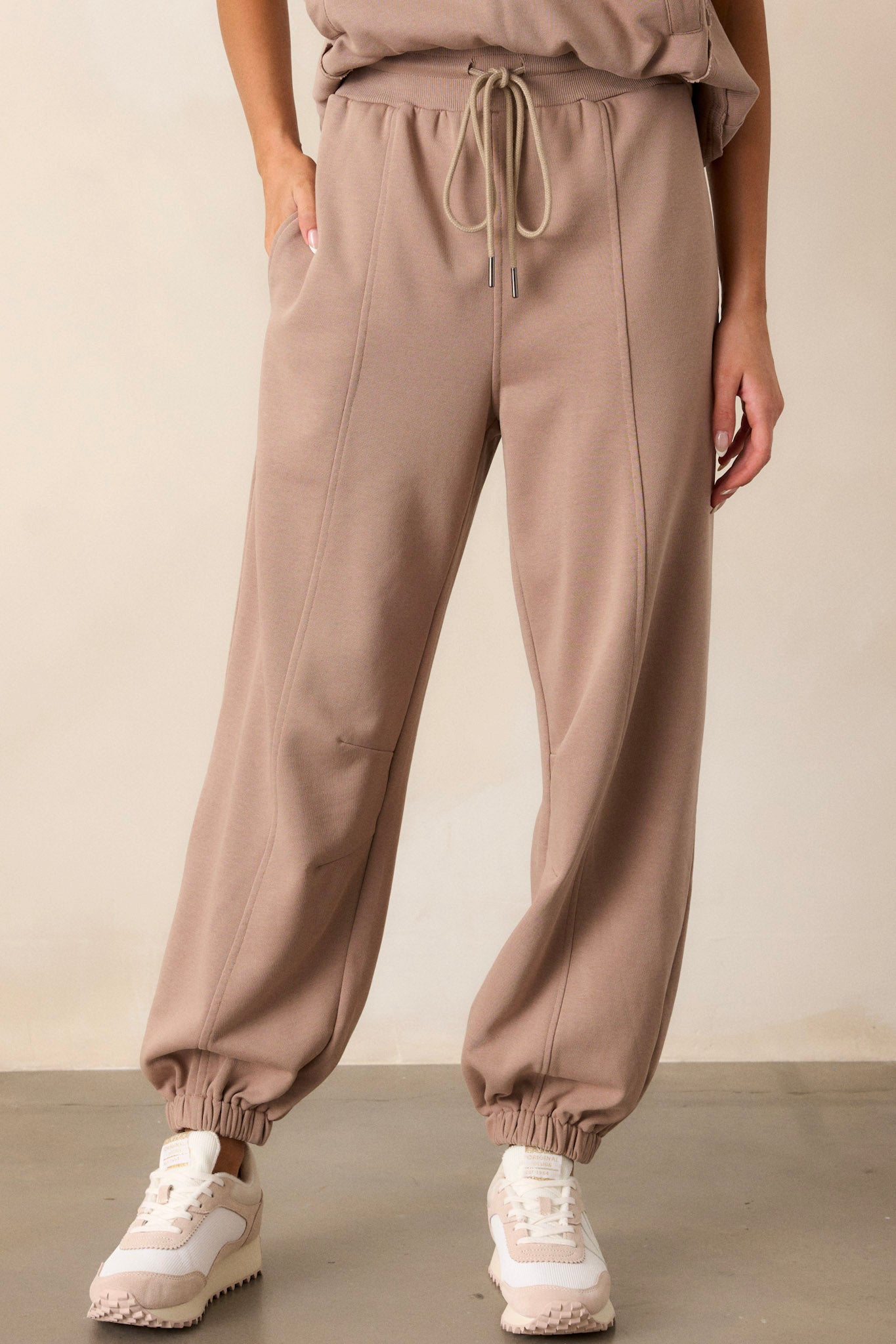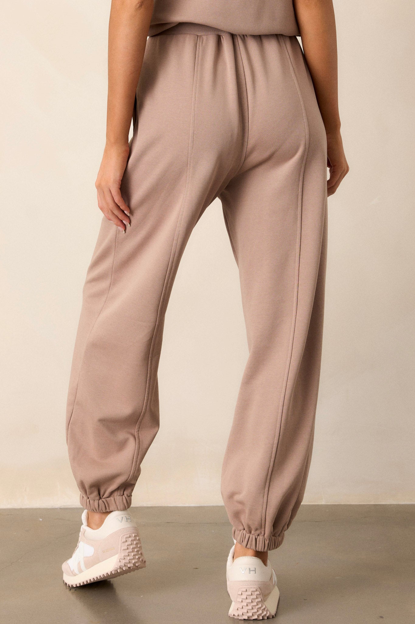 Looking for the perfect balance of comfort and style? Look no further than our Almost Forever 100% Cotton Light Mocha Joggers. Made with 100% cotton, these mocha joggers are the perfect addition to your wardrobe. Stay cozy all day long while still looking effortlessly chic. These light mocha joggers feature a thick elastic waistband, an optional waist drawstring, functional hip pockets, a soft fabric, and elastic cuffed ankles.