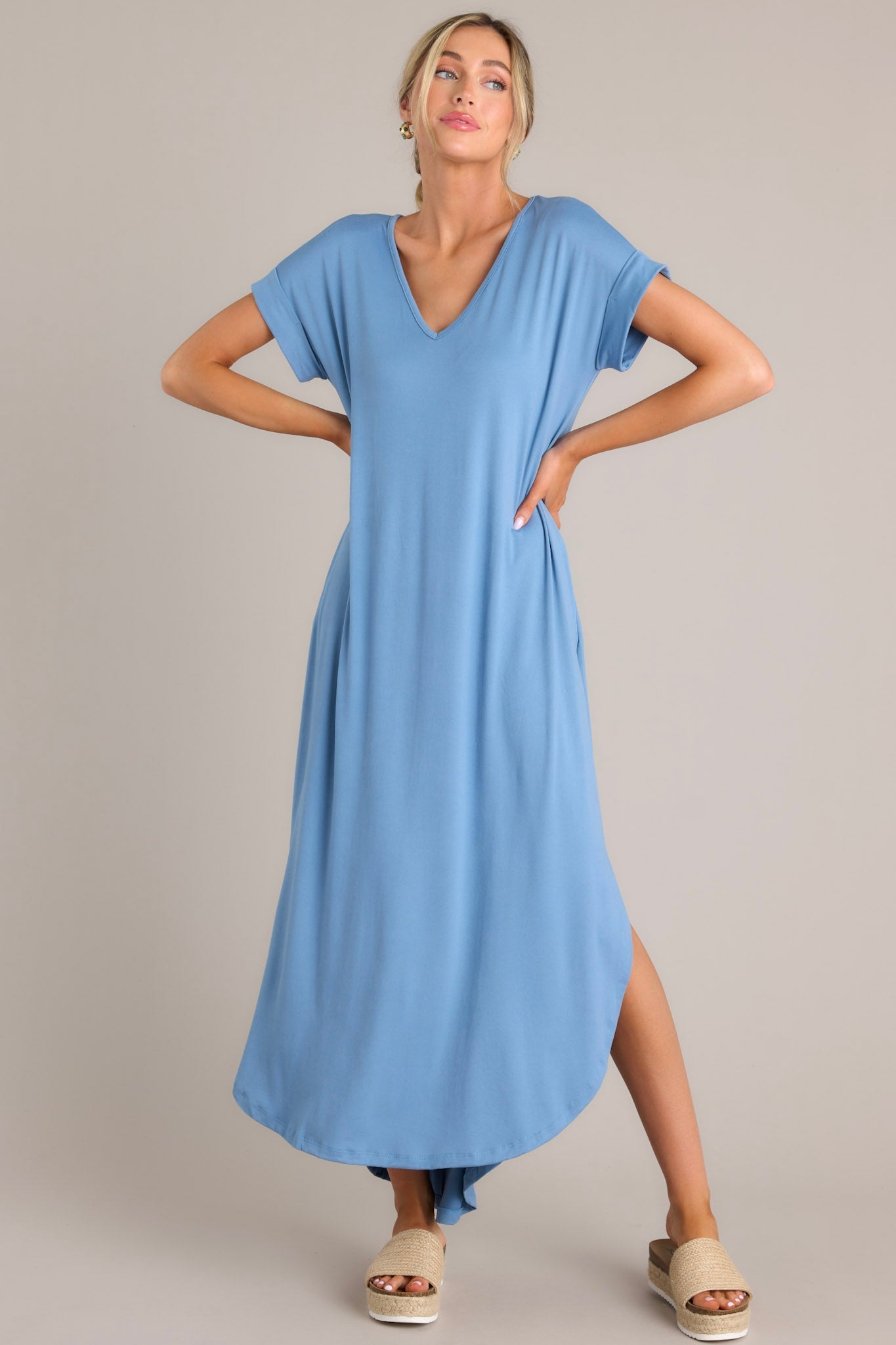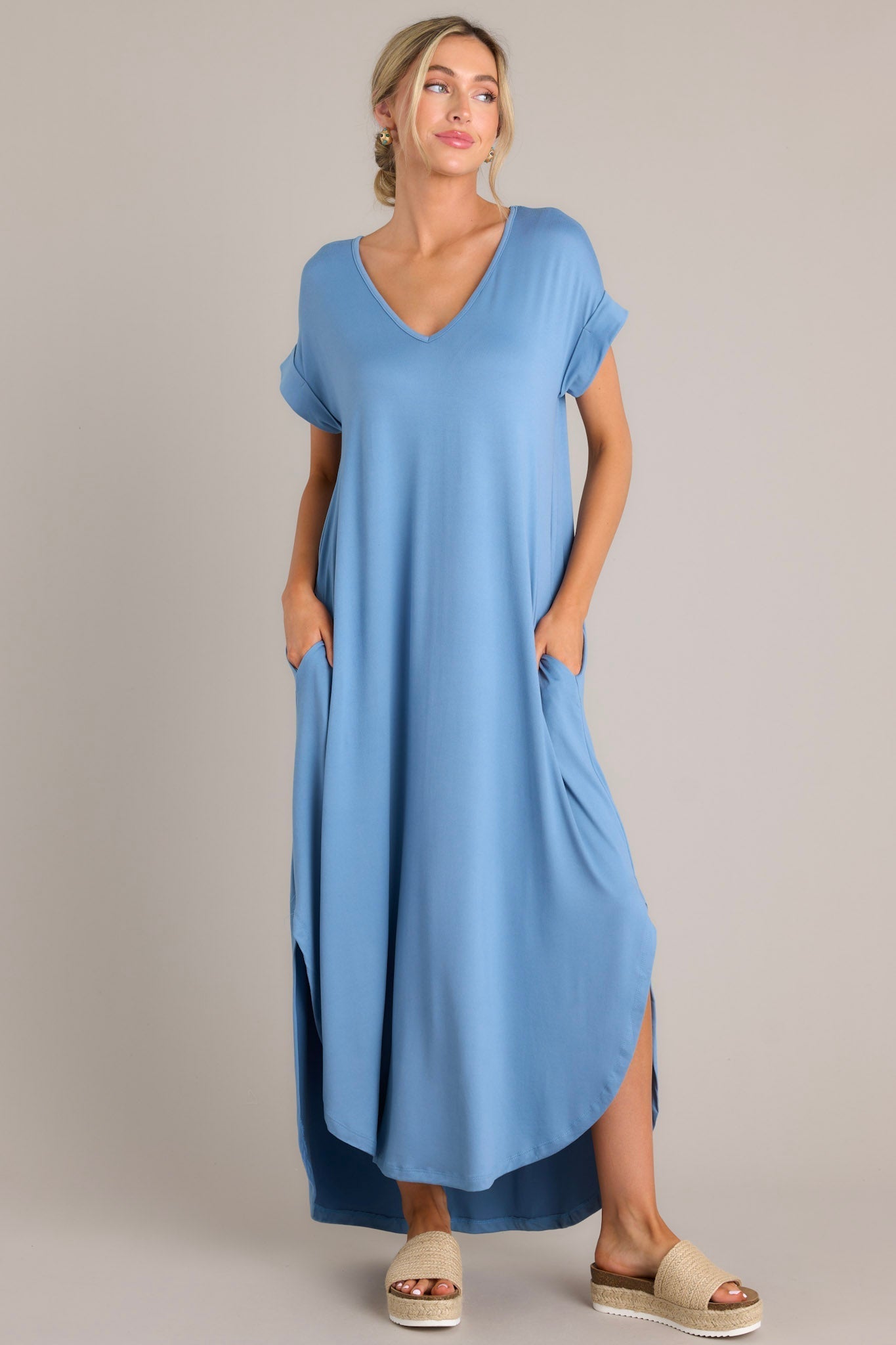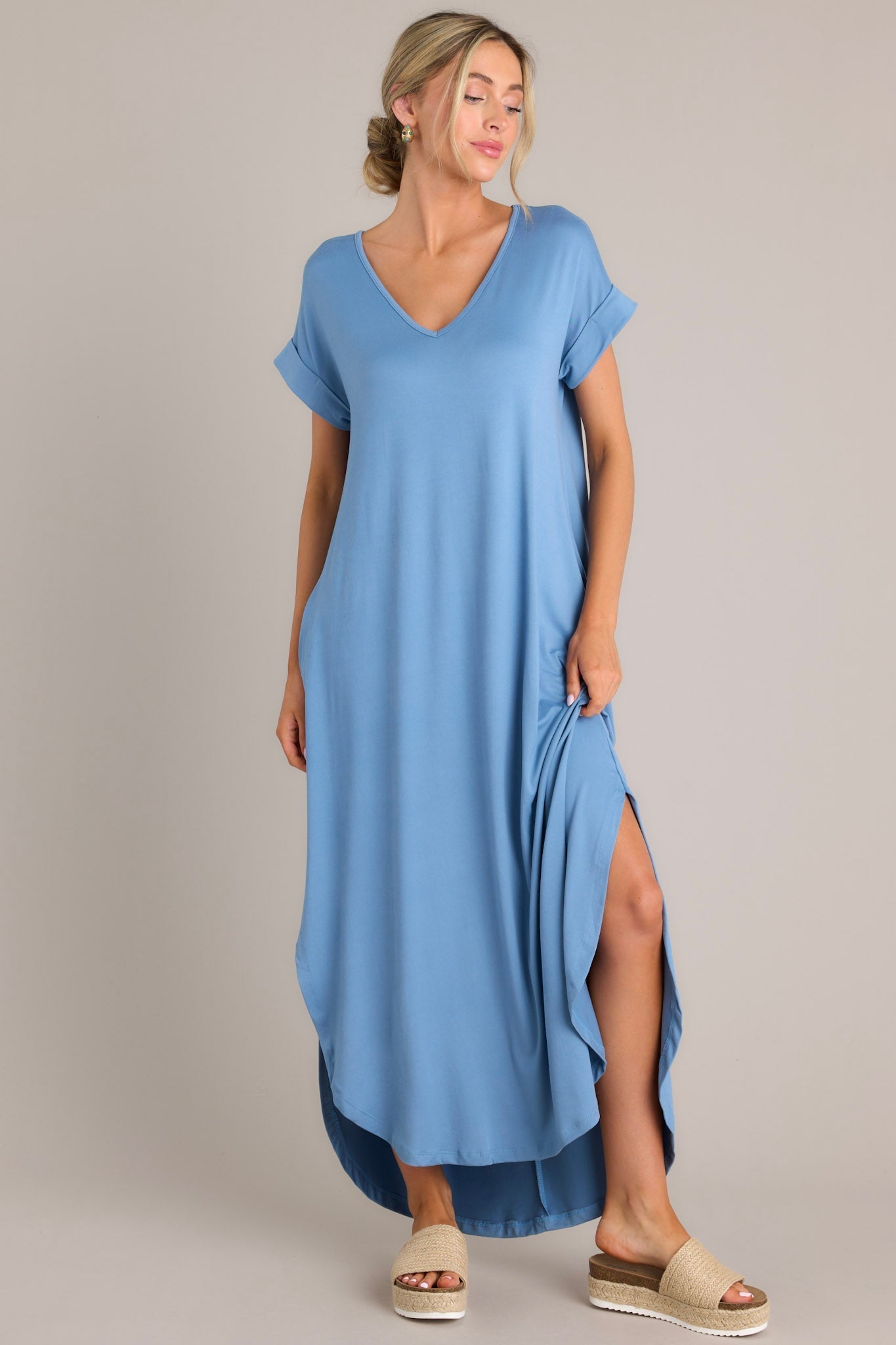 You adore variety and spice in your life, but when it comes to your favorite past time it’s Always The Same Thing. How could you top wearing this amazing maxi while headed to the beach with your main squeeze? Dress features a v-neckline, short cuffed dolman sleeves, gathering in back, pockets, double side slits, and a slight high-low curved hemline.