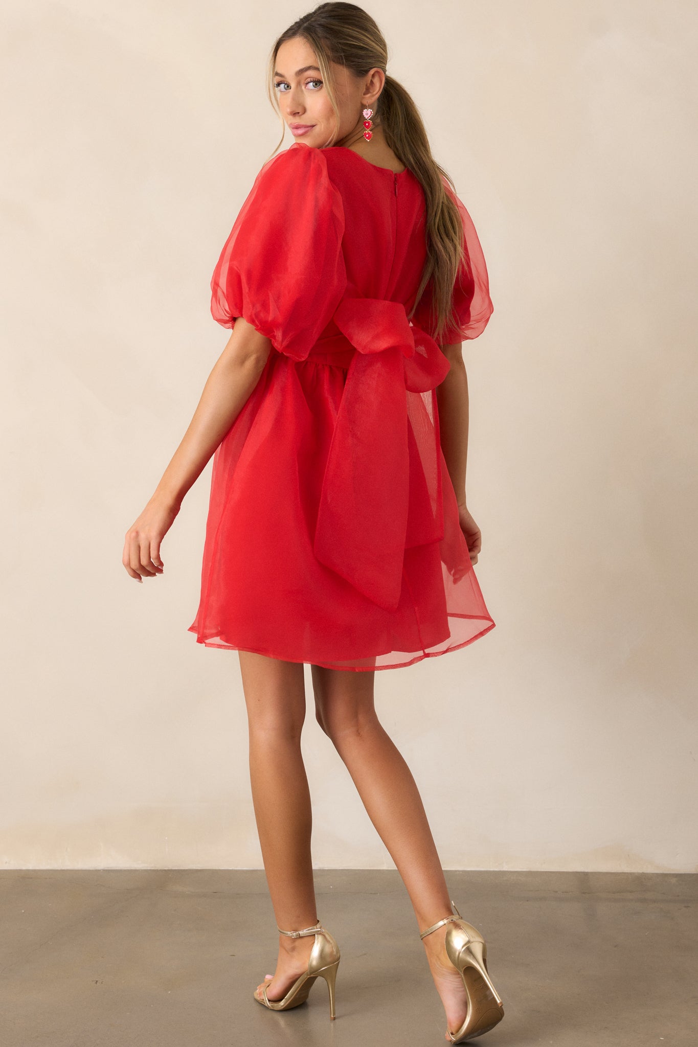 Another Kiss Red Puff Sleeve Mini Dress