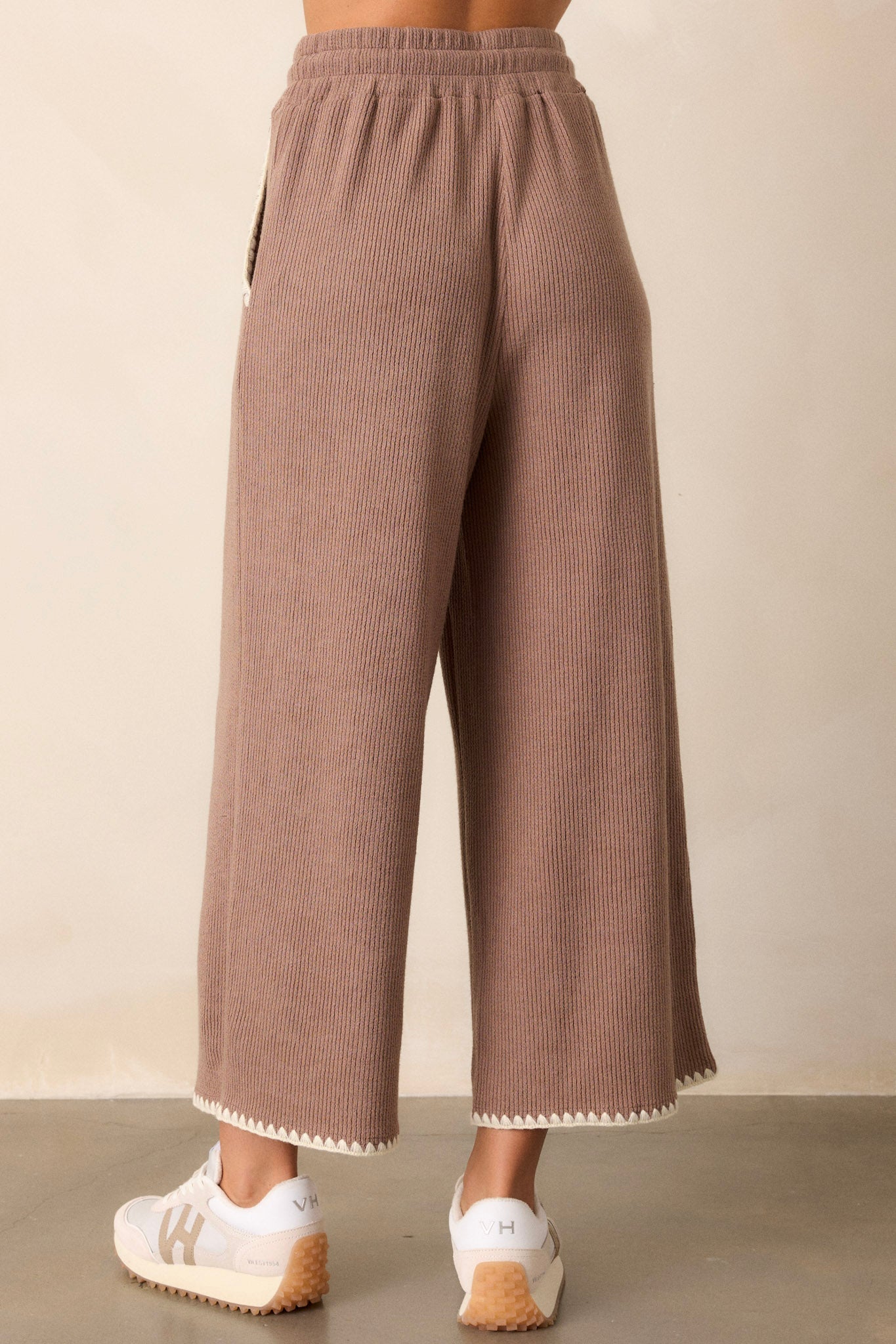 Anytime Now Mocha Blanket Stitch Wide Leg Pants