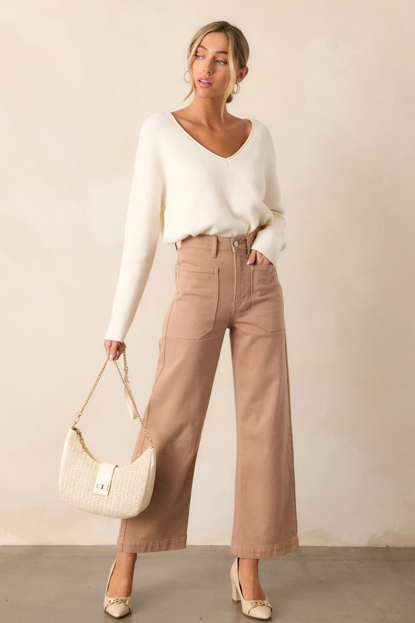 Around The City Tan Wide Leg Jeans