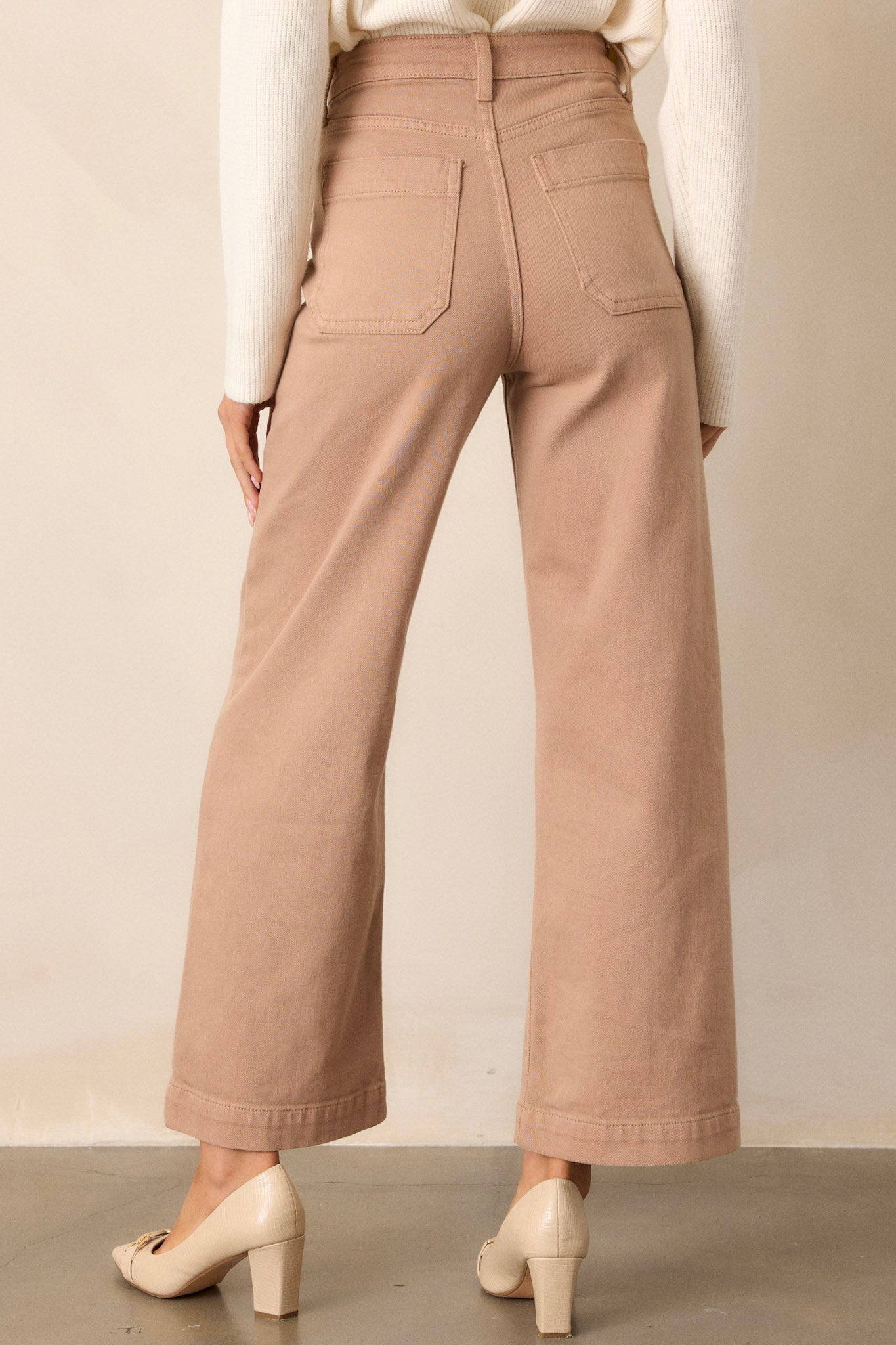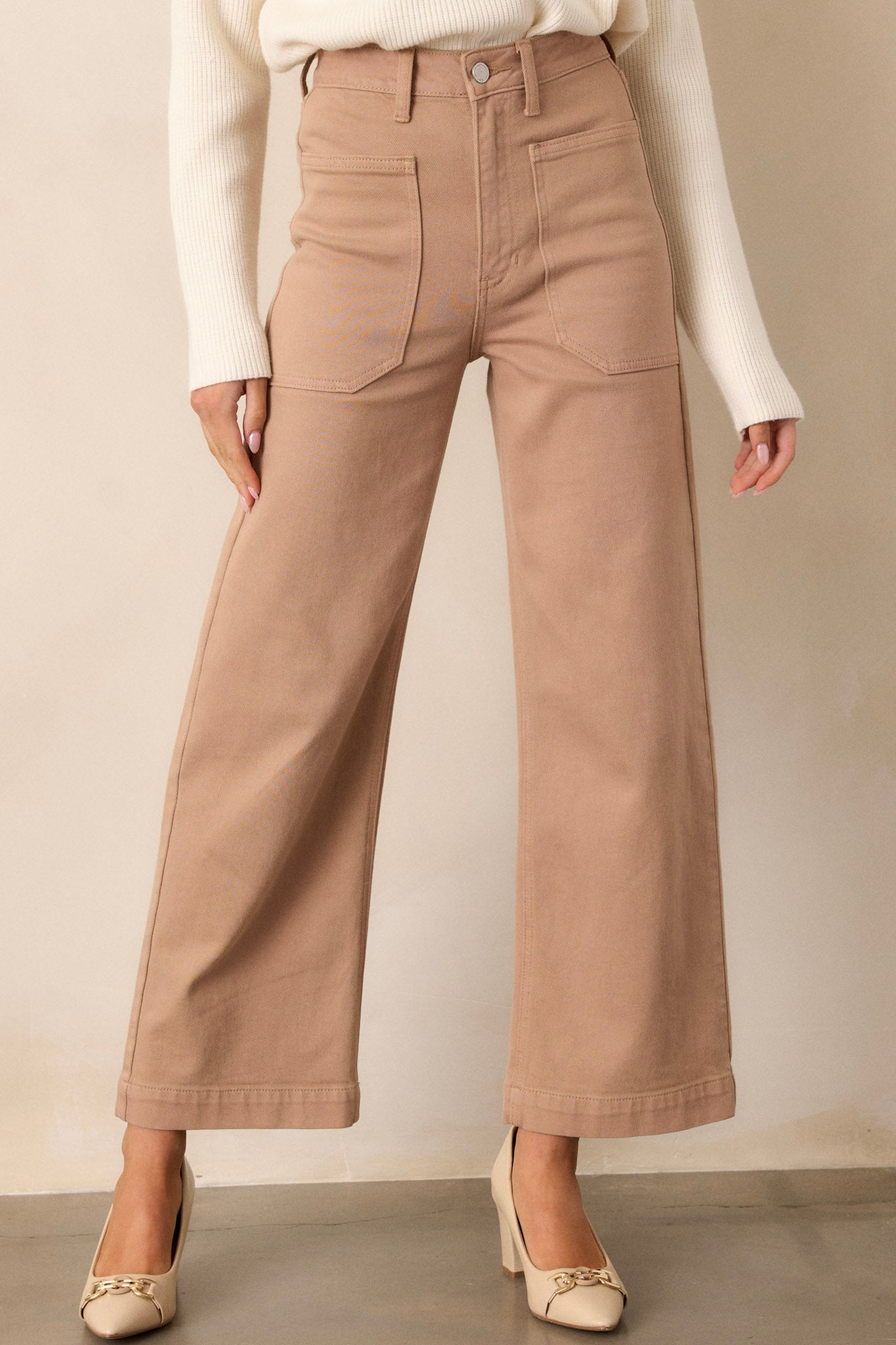 Step into fall with style in our Around The City Tan Wide Leg Jeans! Made from high-quality materials, these jeans feature a flattering straight leg cut that elongates your silhouette. The warm tan color is perfect for the season and adds a touch of whimsy. Be the envy of the pumpkin patch! These tan jeans feature a high waisted design, button & zipper closure, belt loops, functional front & back pockets, and a wide leg.