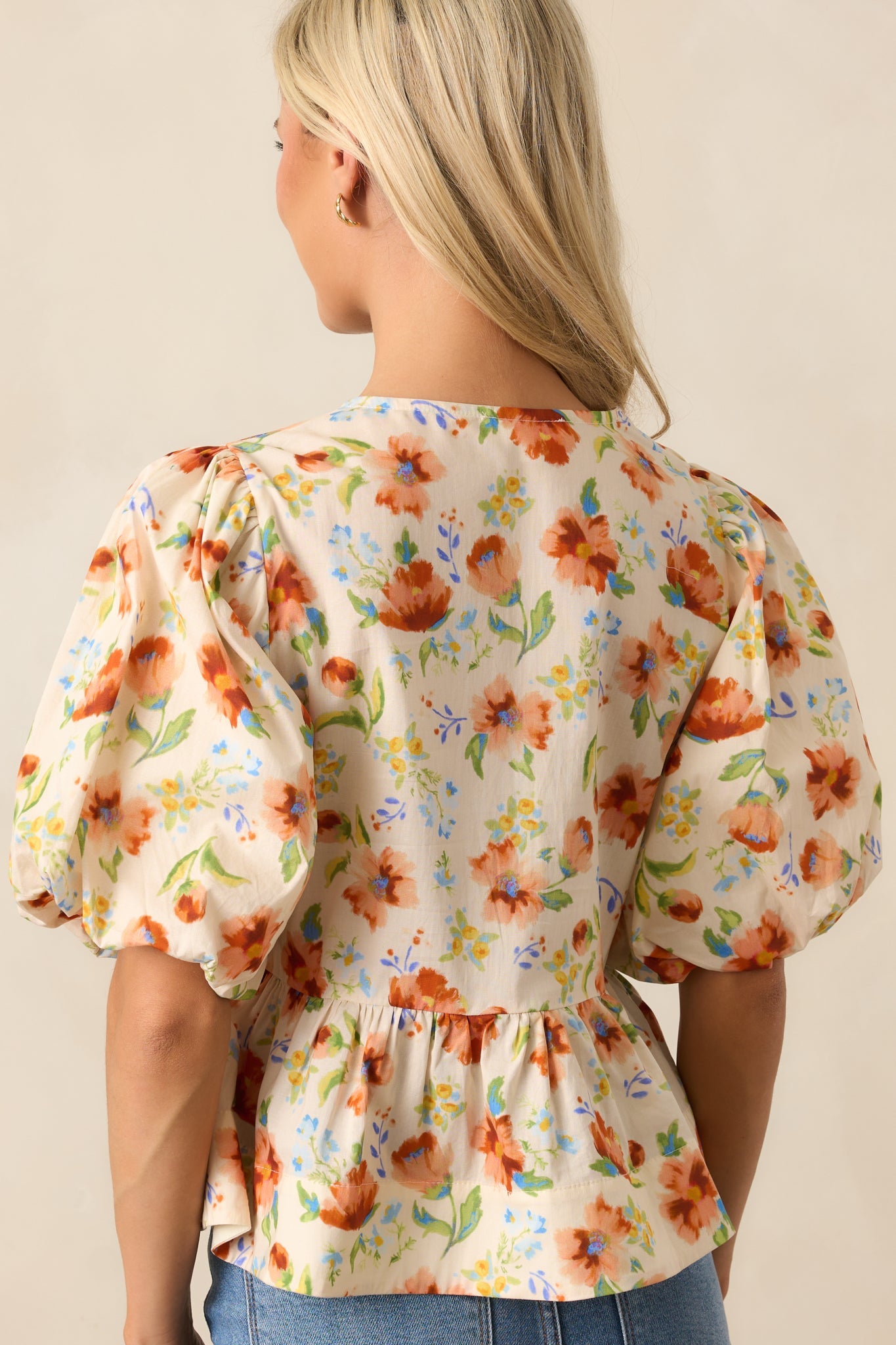 Beyond Compare Ecru Floral Cotton Bow Front Peplum Top