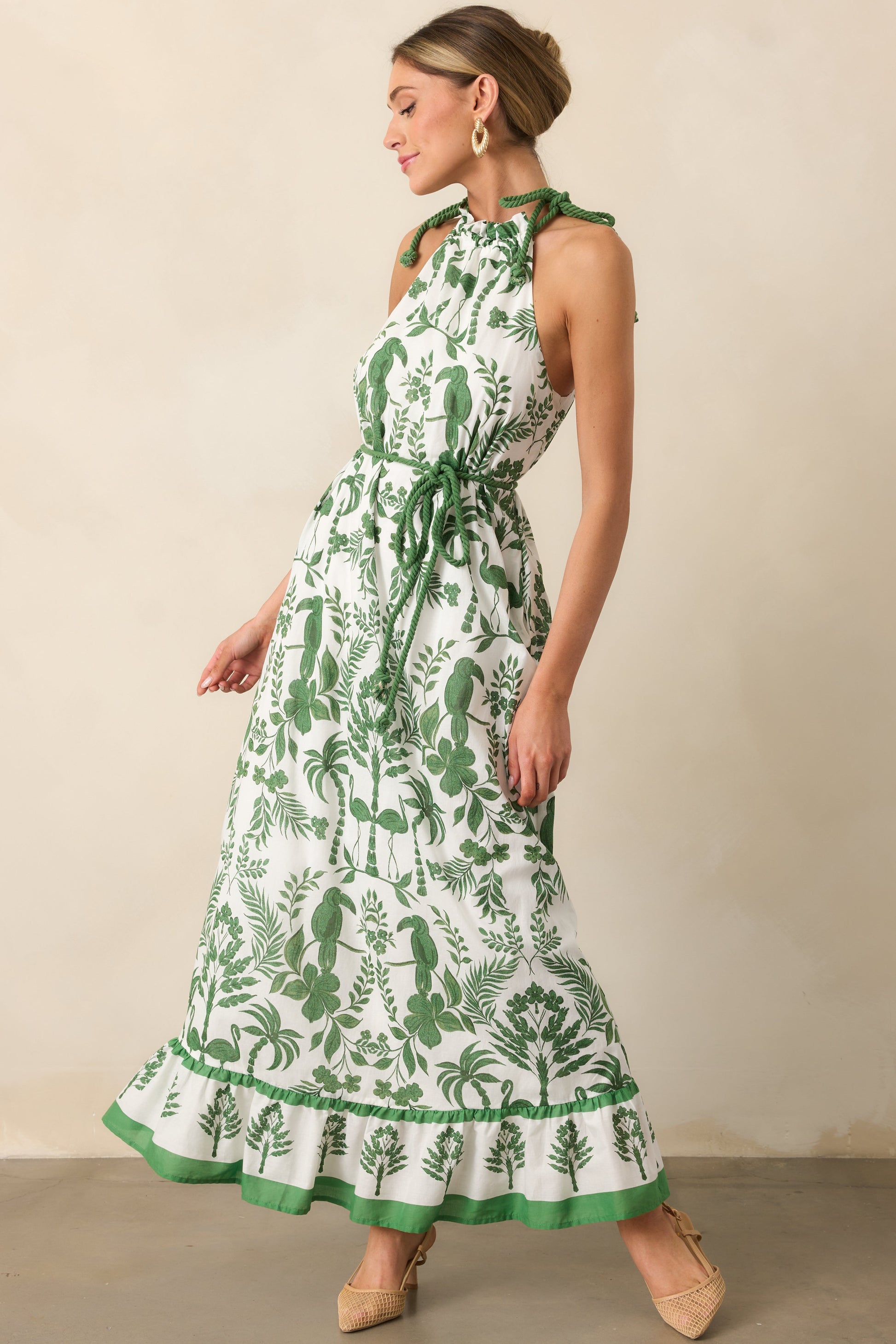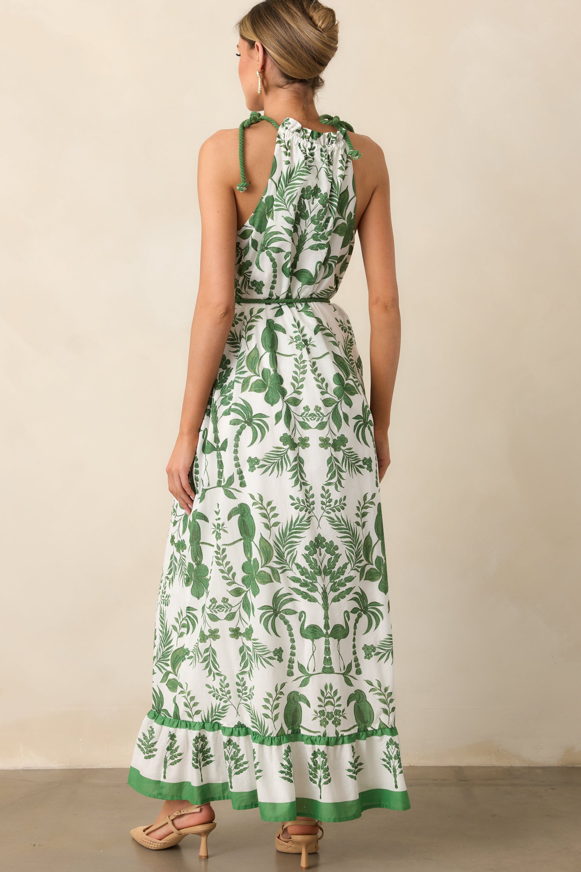 Breeze Through Paradise Cotton Green Tropical Print Maxi Dress
