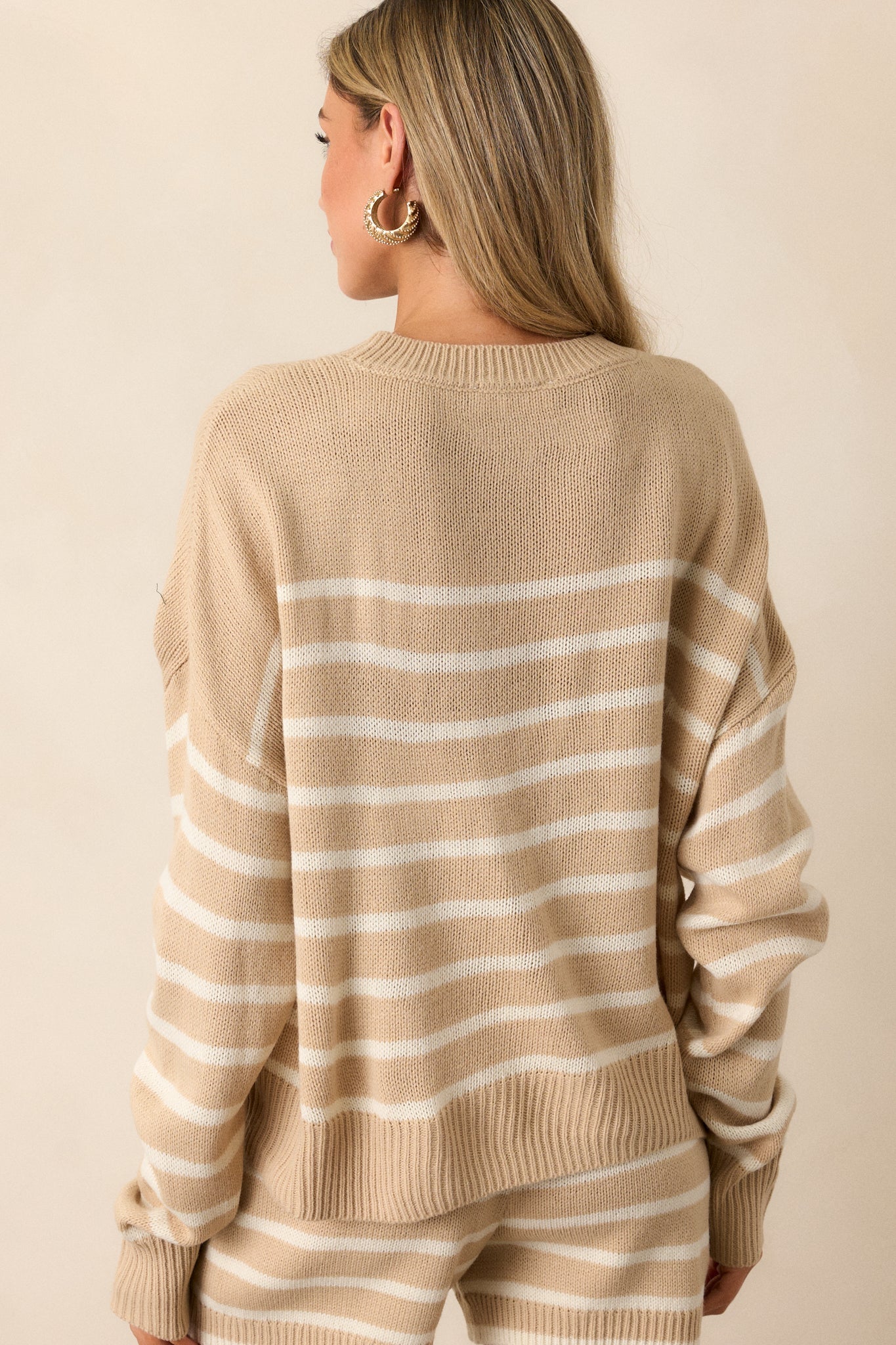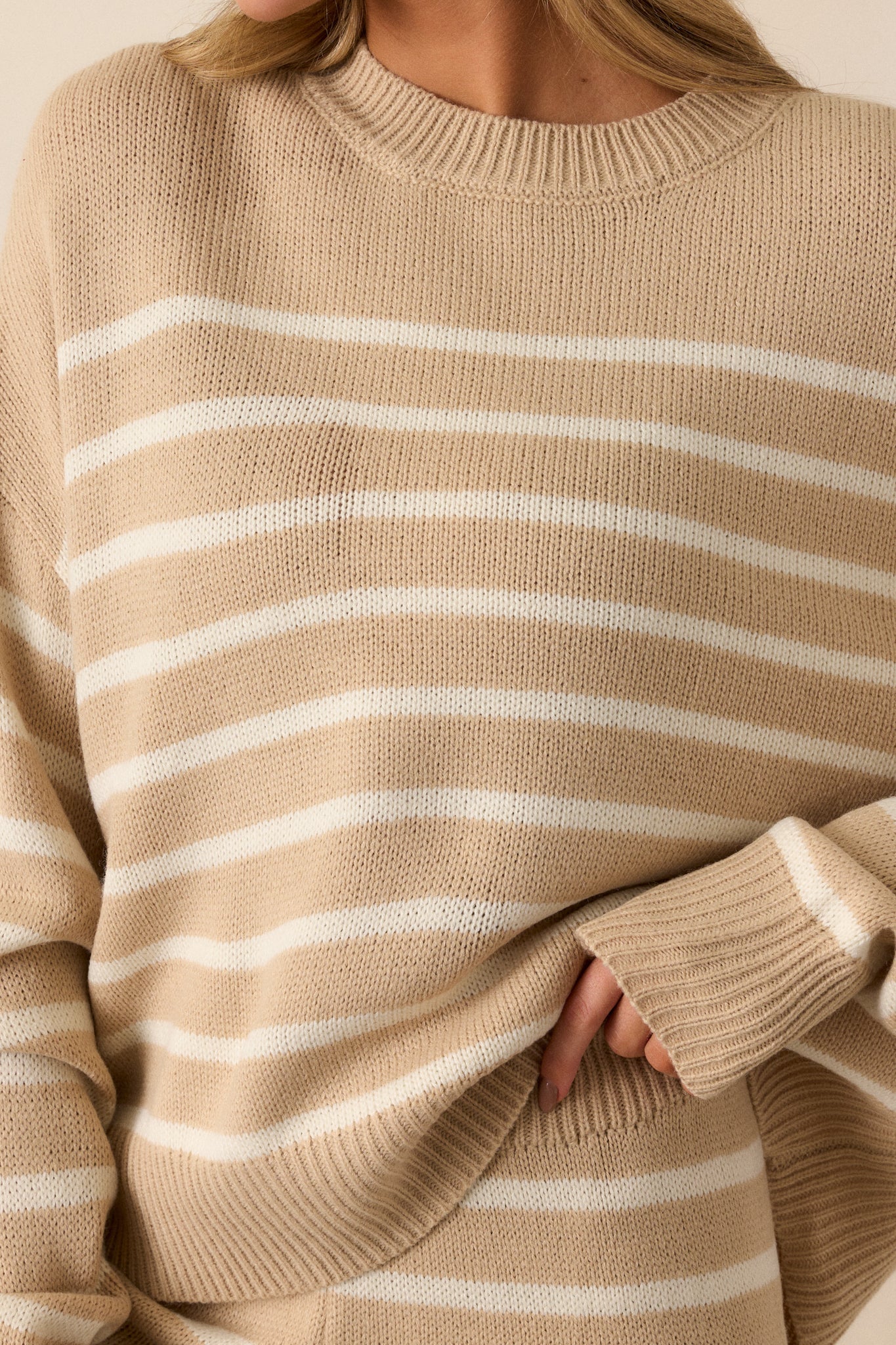 Brewed Bliss Taupe and Ivory Stripe Sweater