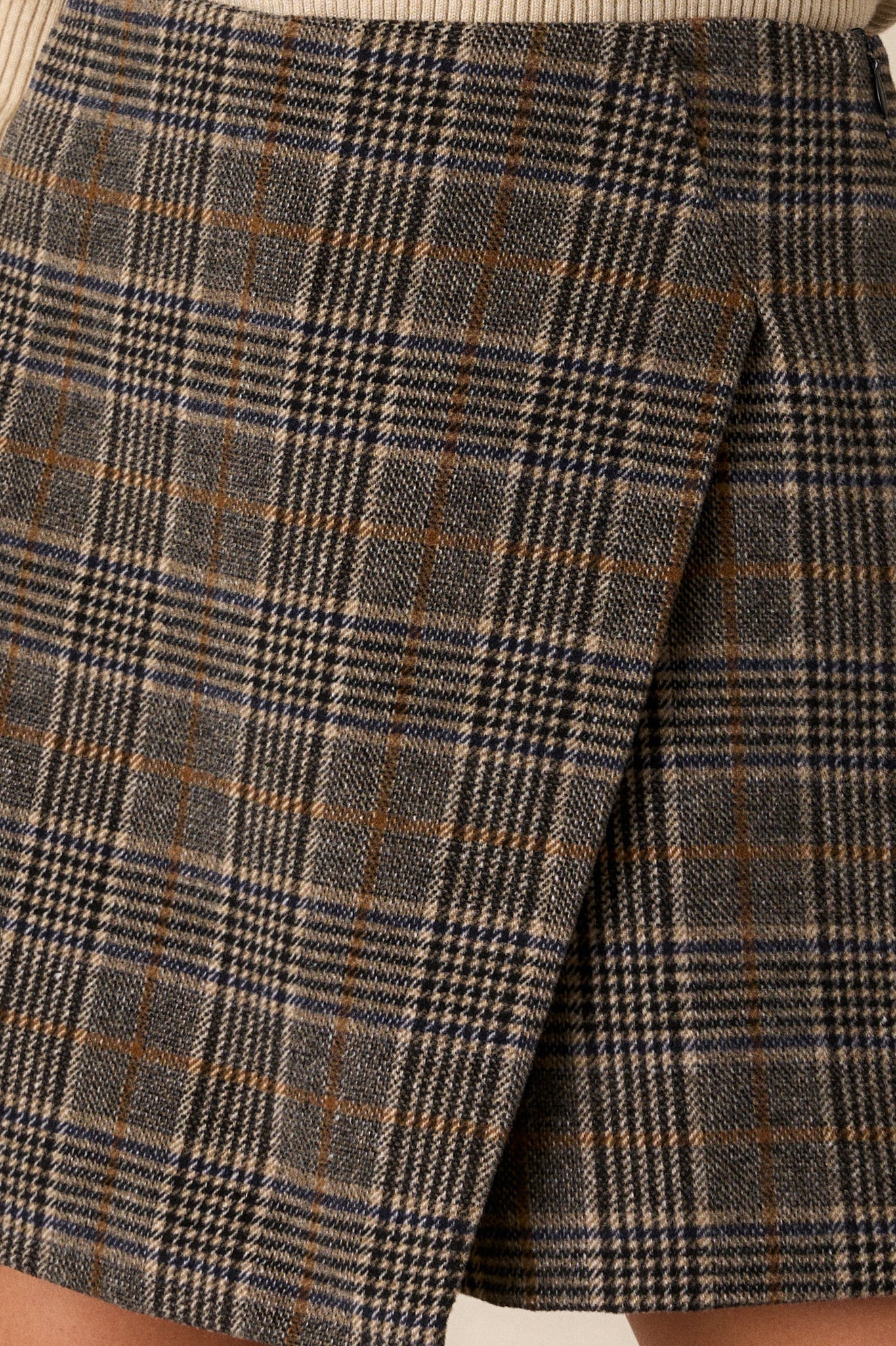 Step into style with our Captured Moments Brown Plaid Mini Skort! This versatile skort features a classic plaid pattern in a warm, earthy tone. Perfect for creating a chic and effortless look, this skirt will elevate any outfit. Show off your unique fashion sense with this must-have addition to your wardrobe. This brown plaid skort features a plaid design, envelope skirt front, full short back, and discrete zipper.