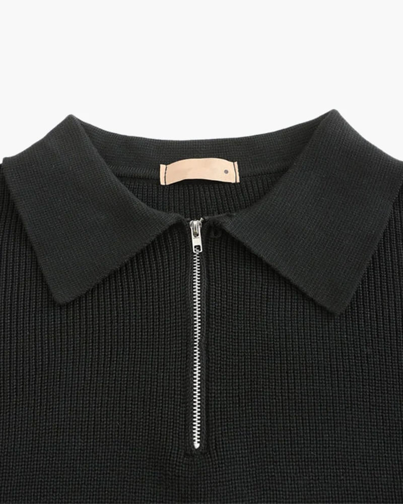 Designed with a classic fit and sleek front zipper, this piece blends sophistication with everyday ease. Whether layered over a shirt or worn solo, it exudes understated elegance.