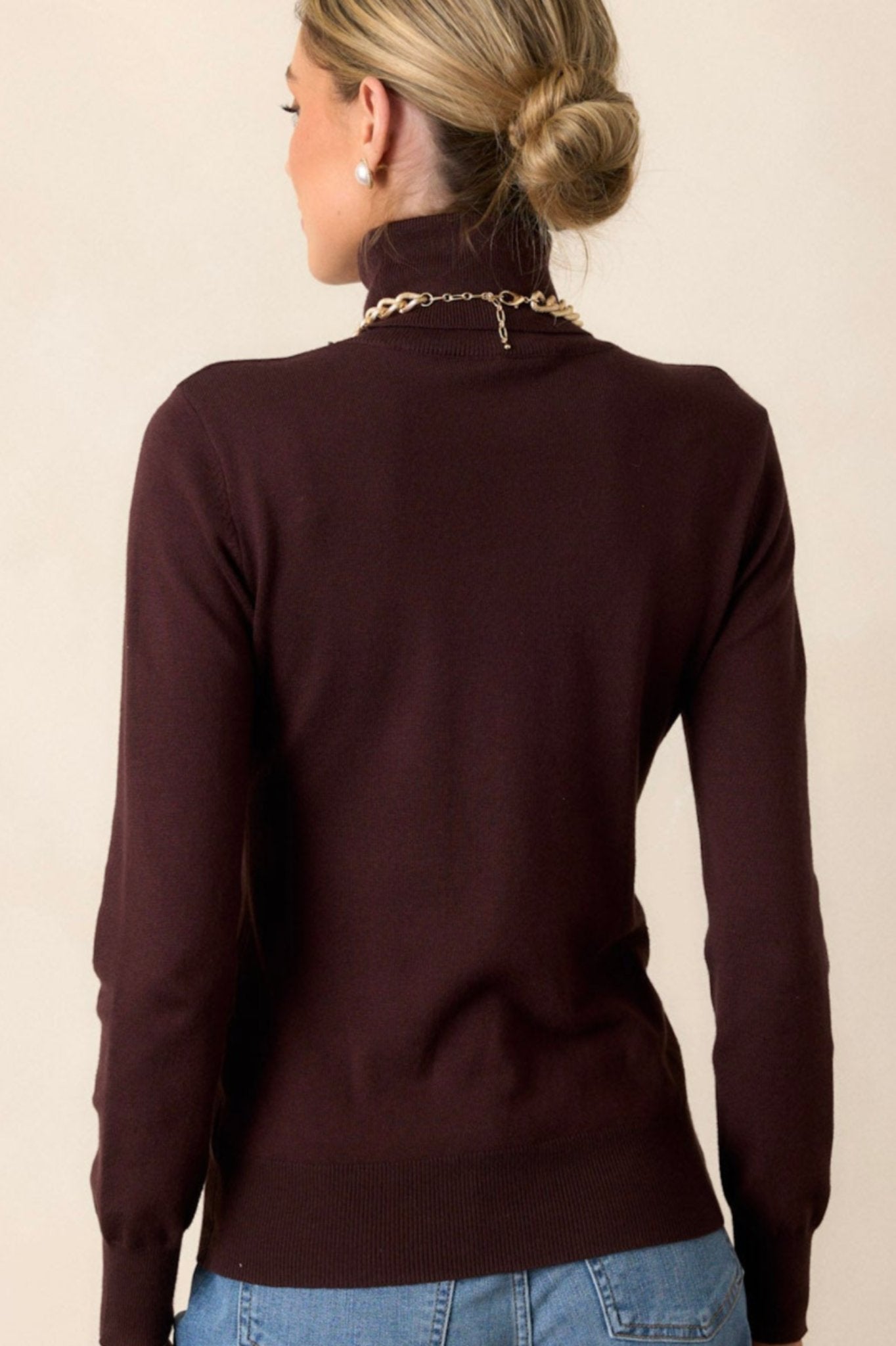 Comfortable Charm Dark Brown Turtleneck Sweater