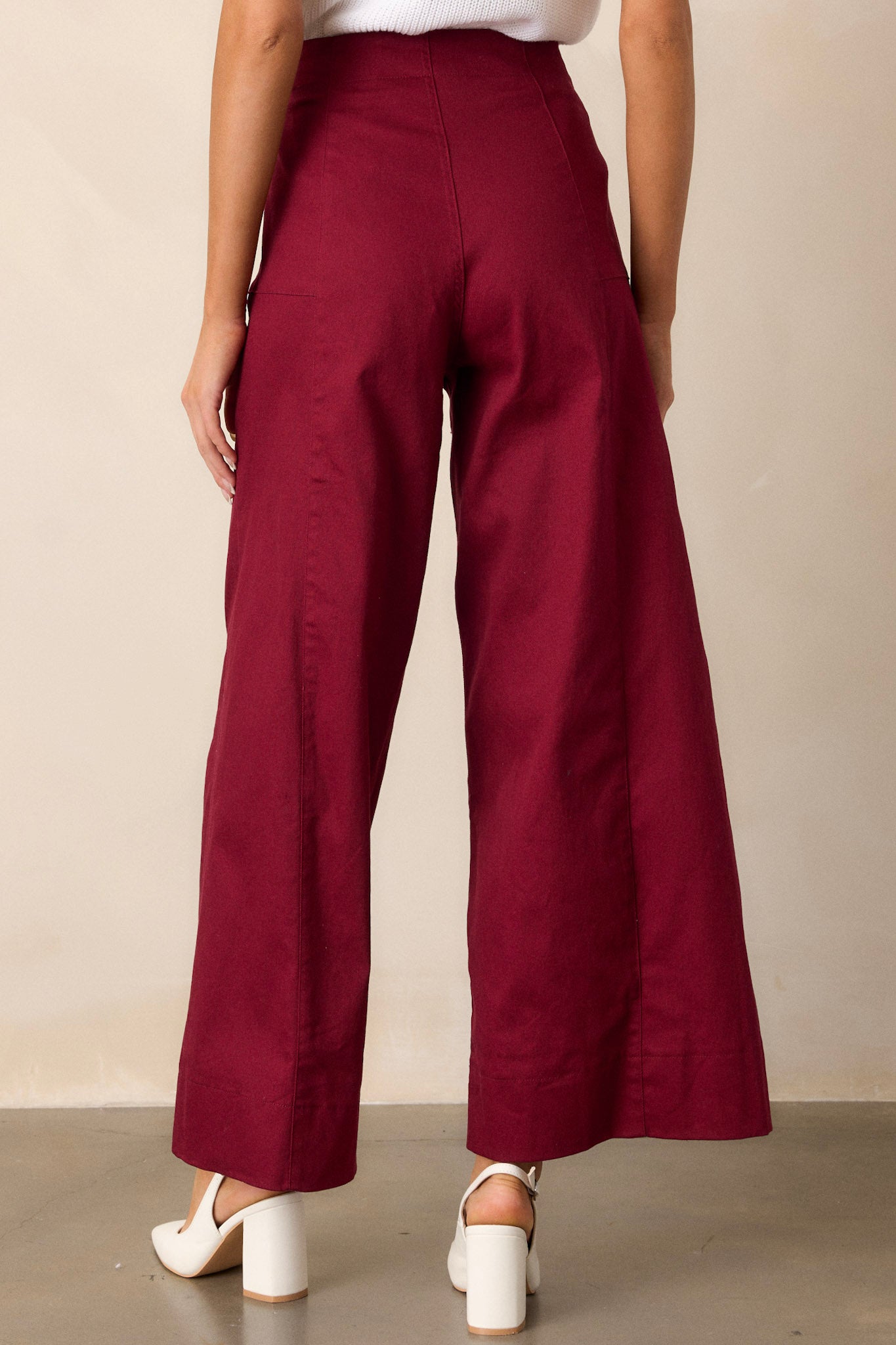 Unleash your bold and adventurous side with our Daylight Glimmer Burgundy Wide Leg Pants! These statement pants feature a stunning glimmer effect that will turn heads wherever you go. The wide leg design offers a comfortable and flattering fit, perfect for taking on any challenge with confidence. Elevate your style and stand out from the crowd with these eye-catching pants. These burgundy pants feature a high waisted design, a button zipper closure, functional rectangular hip pockets and a wide leg.