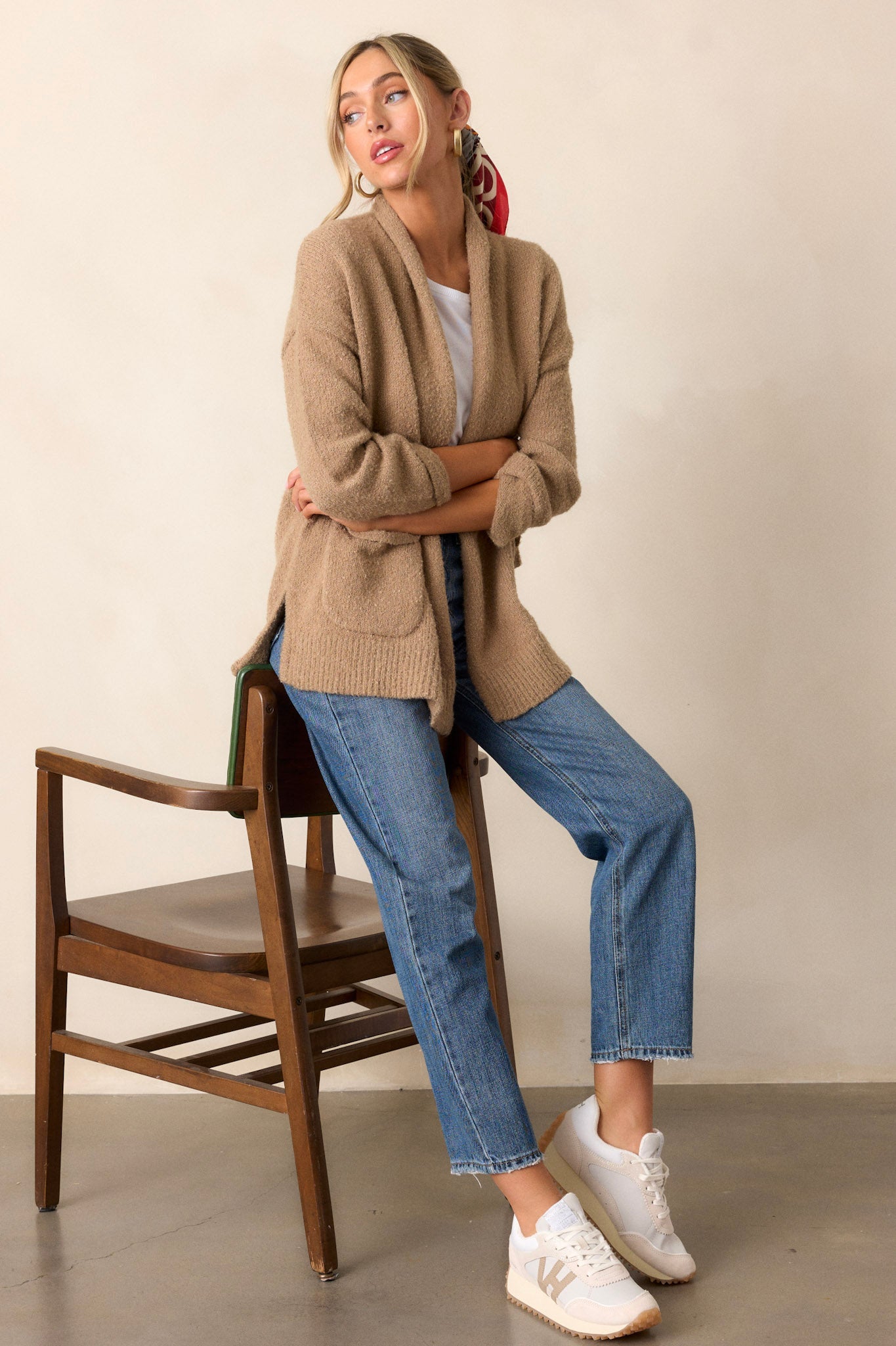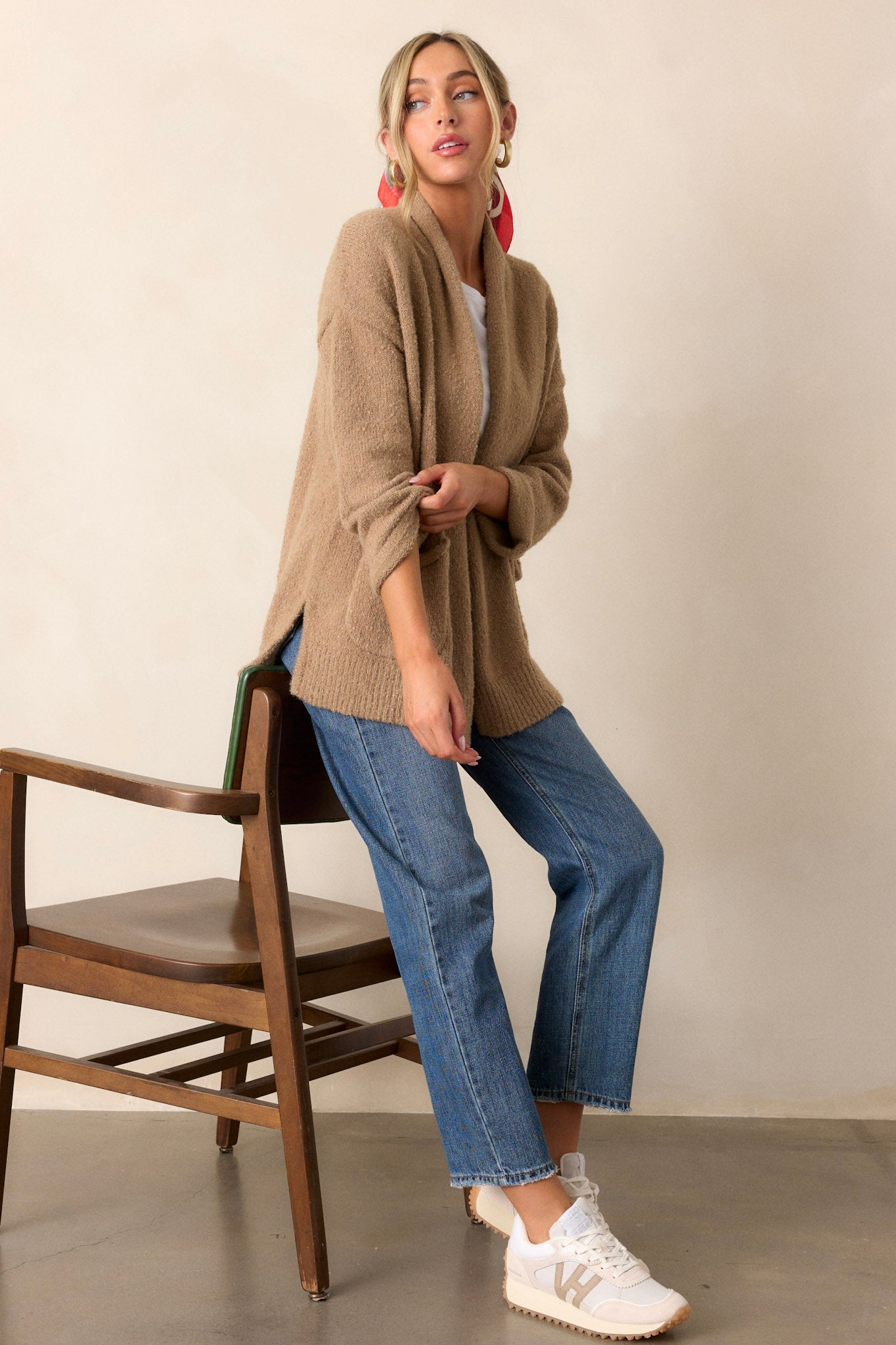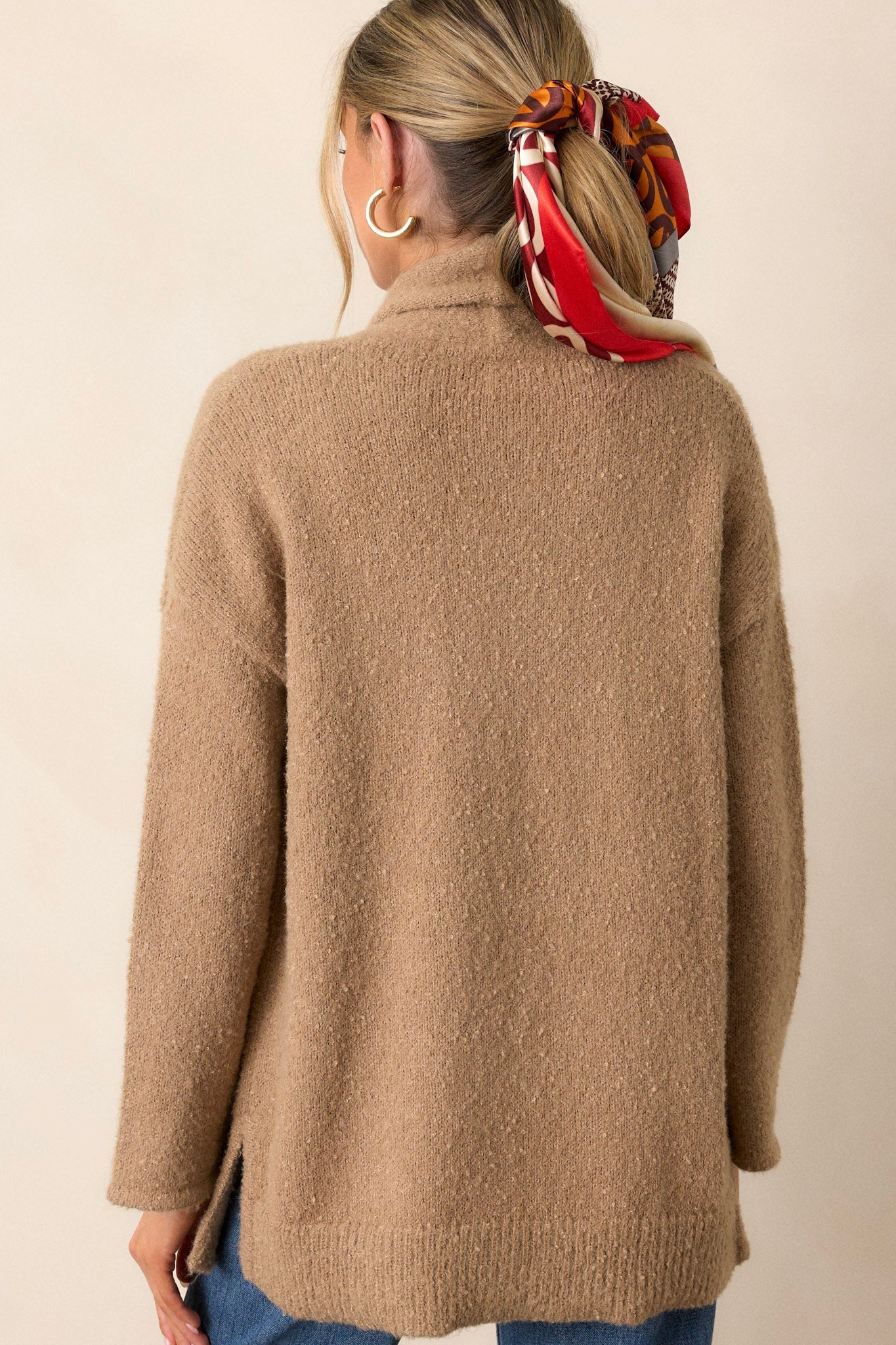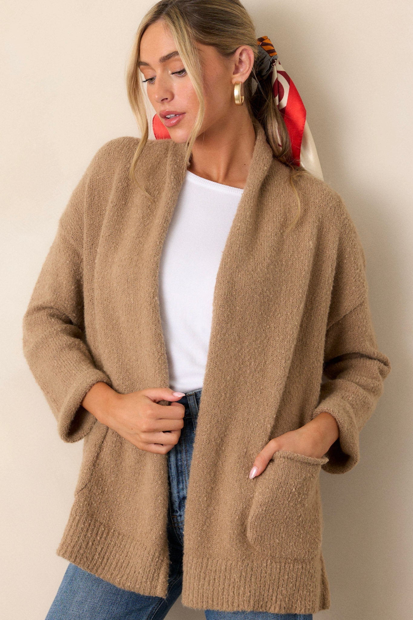 Lighten up your wardrobe with our Do You Mind Light Mocha Cardigan! This cozy style is sure to brighten up your dreary days. Perfect for those chilly evenings, its classic mocha color makes it a must-have for your wardrobe. Don't mind if we do! This cardigan features a folded collar, functional pockets, and side slits.