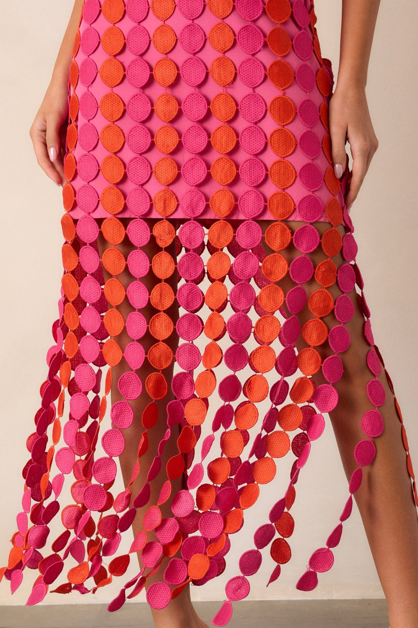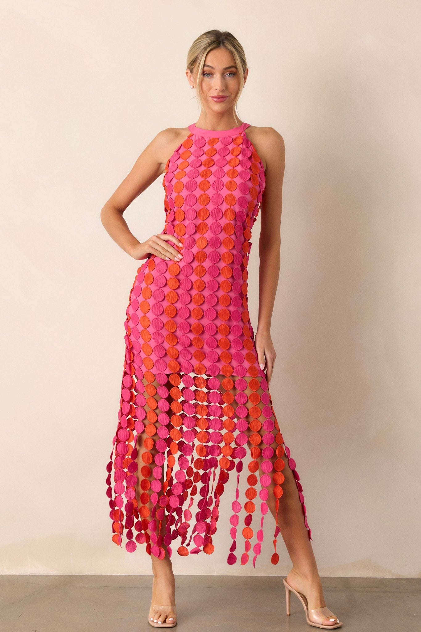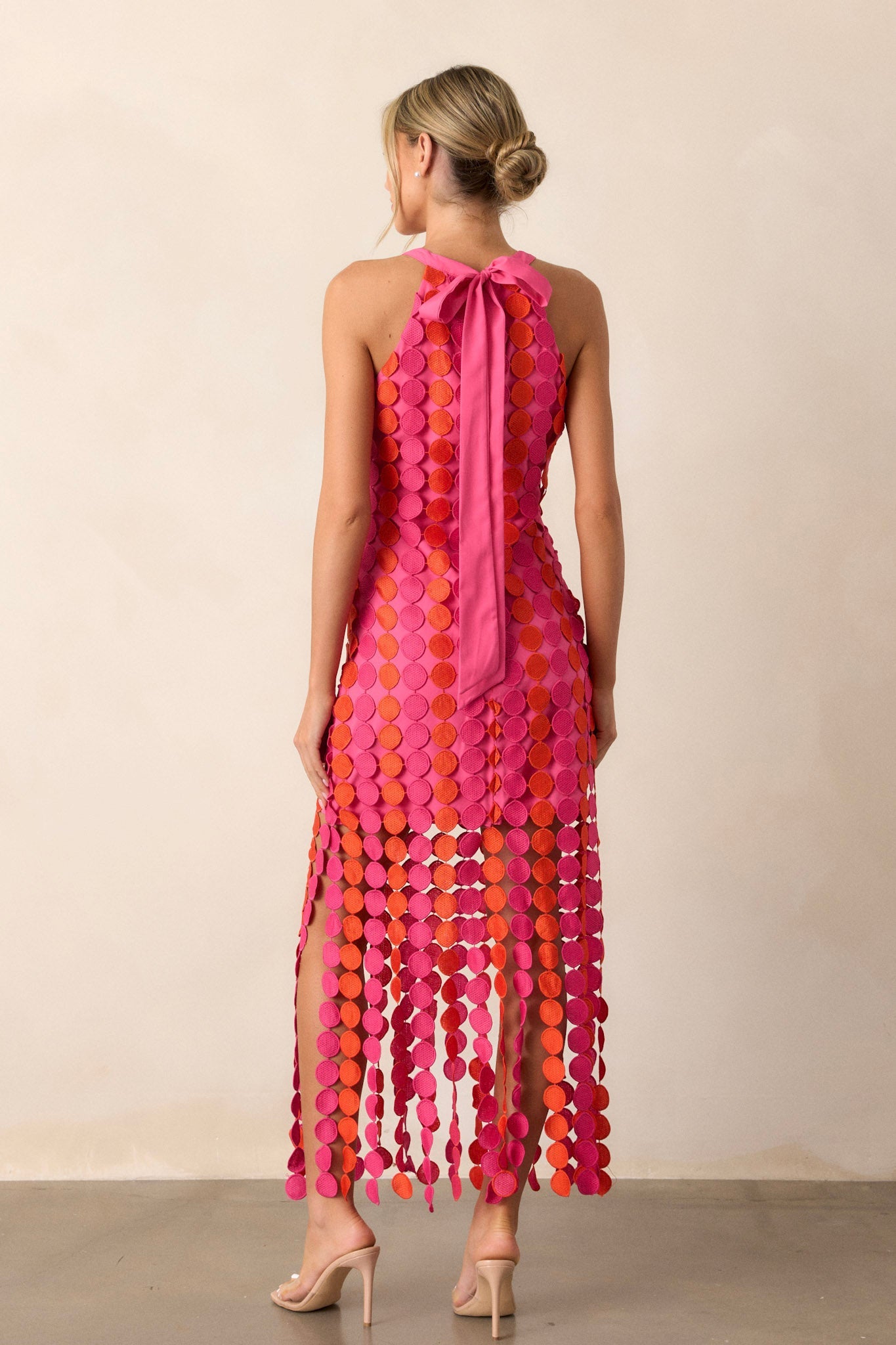 Dream Avenue Hot Pink Fringe Halter Top Midi Dress
