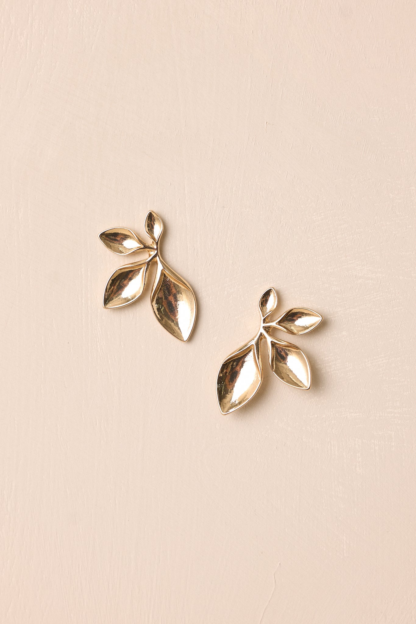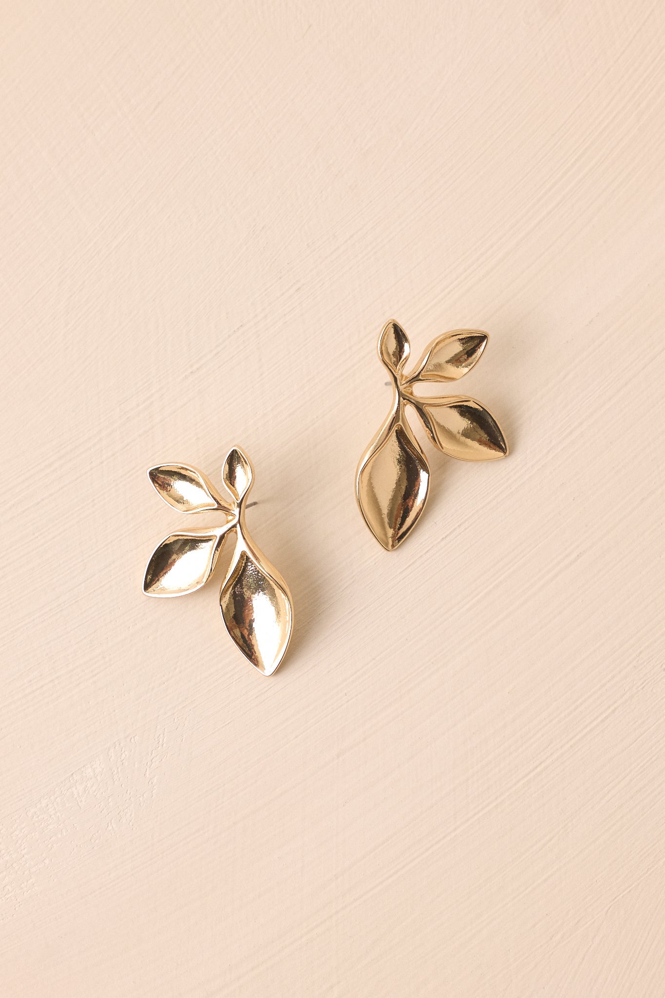 Elevate your style with our Dusk Reverie Gold Leaf Earrings. These earrings have a unique and elegant design that adds a touch of sophistication to any outfit. Perfect for any occasion, they are versatile and durable, making them a must-have accessory for your jewelry collection. These gold earrings feature gold hardware, a branch design with four leaf petals and secure back postings.