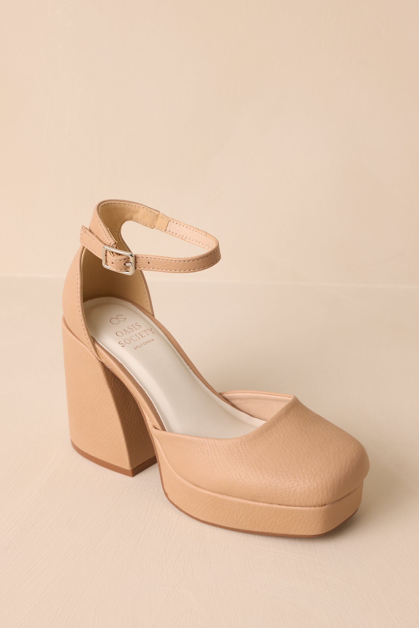 Elevate your style with Dynamic Steps Beige Ankle Strap Block Heels! These trendy heels will take your outfit to the next level with their unique ankle strap and block heel design. Comfort and fashion collide with these versatile heels that are perfect for any occasion. Step up your shoe game today! These heels feature an adjustable ankle strap, thick block heel, and a closed toe design.