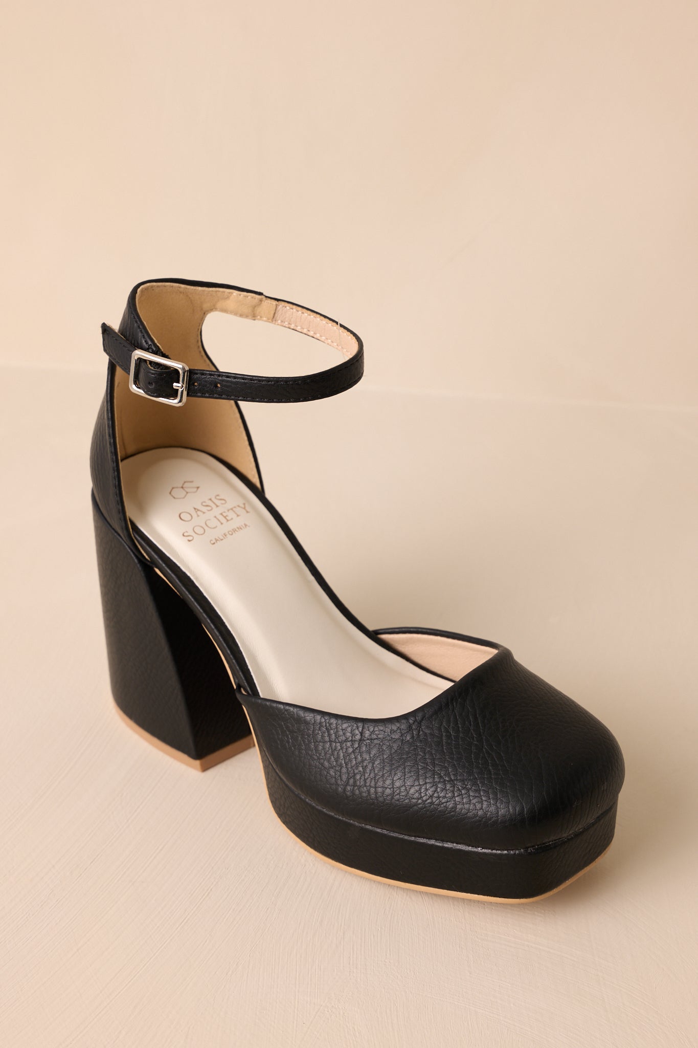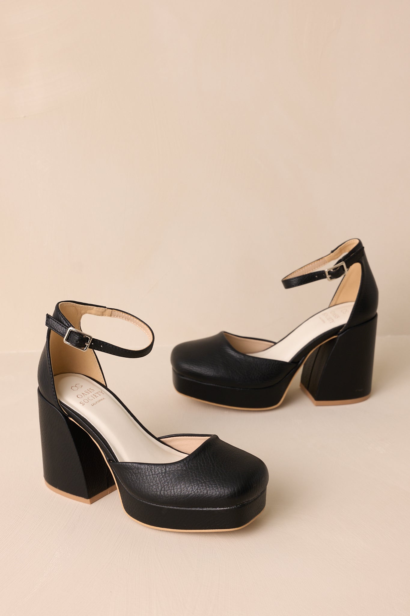 Elevate your style with Dynamic Steps Black Ankle Strap Block Heels! These trendy heels will take your outfit to the next level with their unique ankle strap and block heel design. Comfort and fashion collide with these versatile heels that are perfect for any occasion. Step up your shoe game today! These black heels feature an adjustable ankle strap, thick block heel, and a closed toe design.