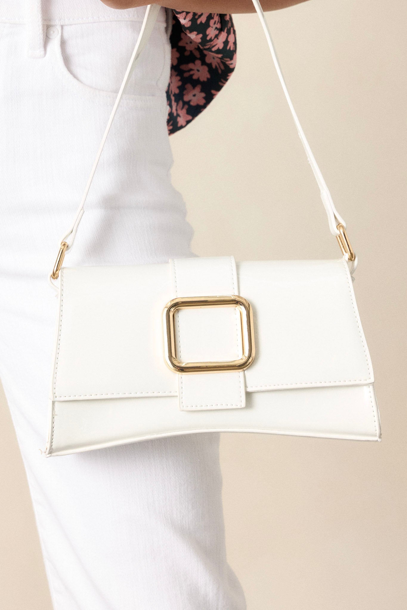Elegant Allure Ivory Glossy Handbag