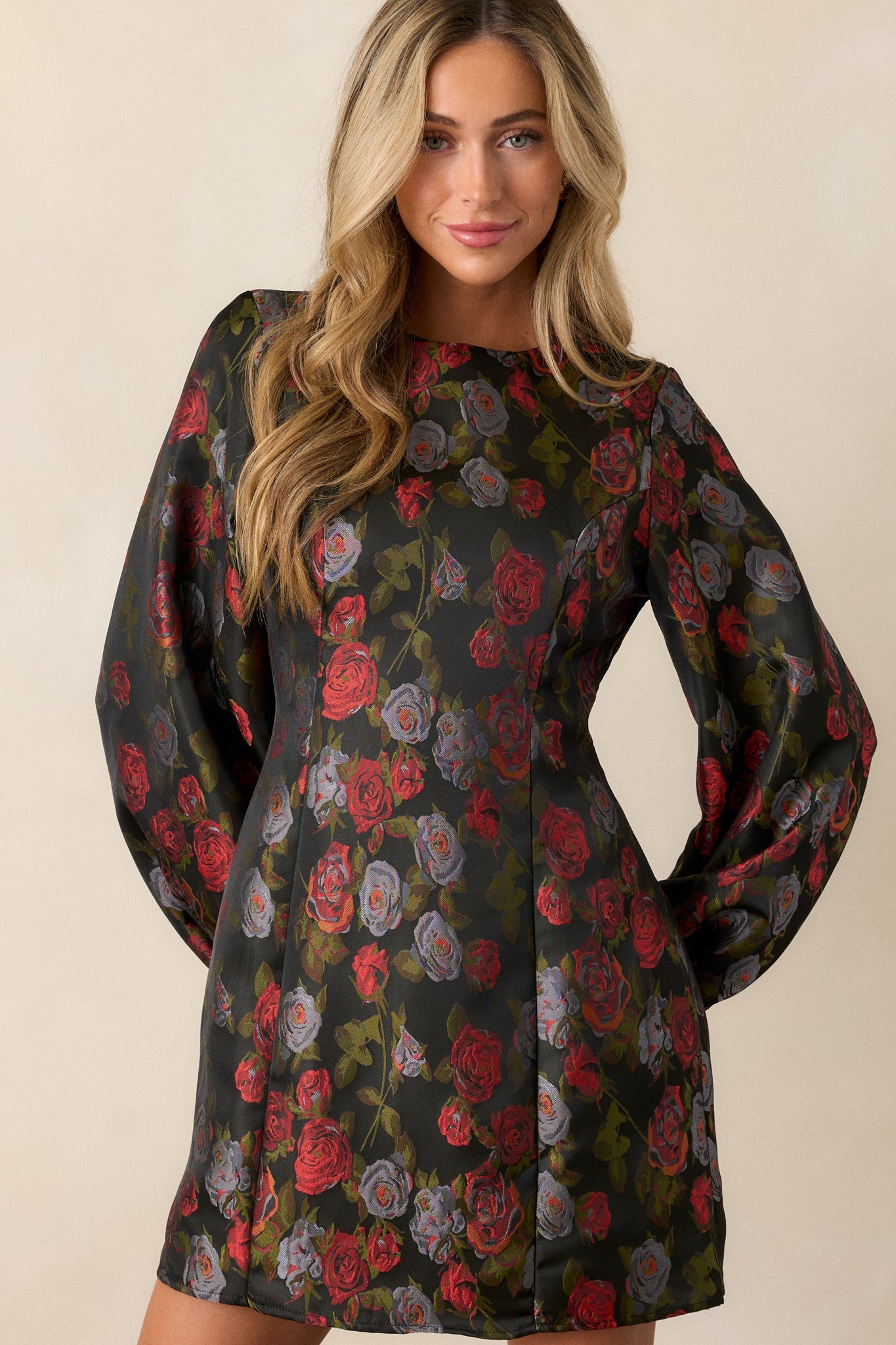 Enchanted Petals Black Floral Balloon Sleeve Mini Dress